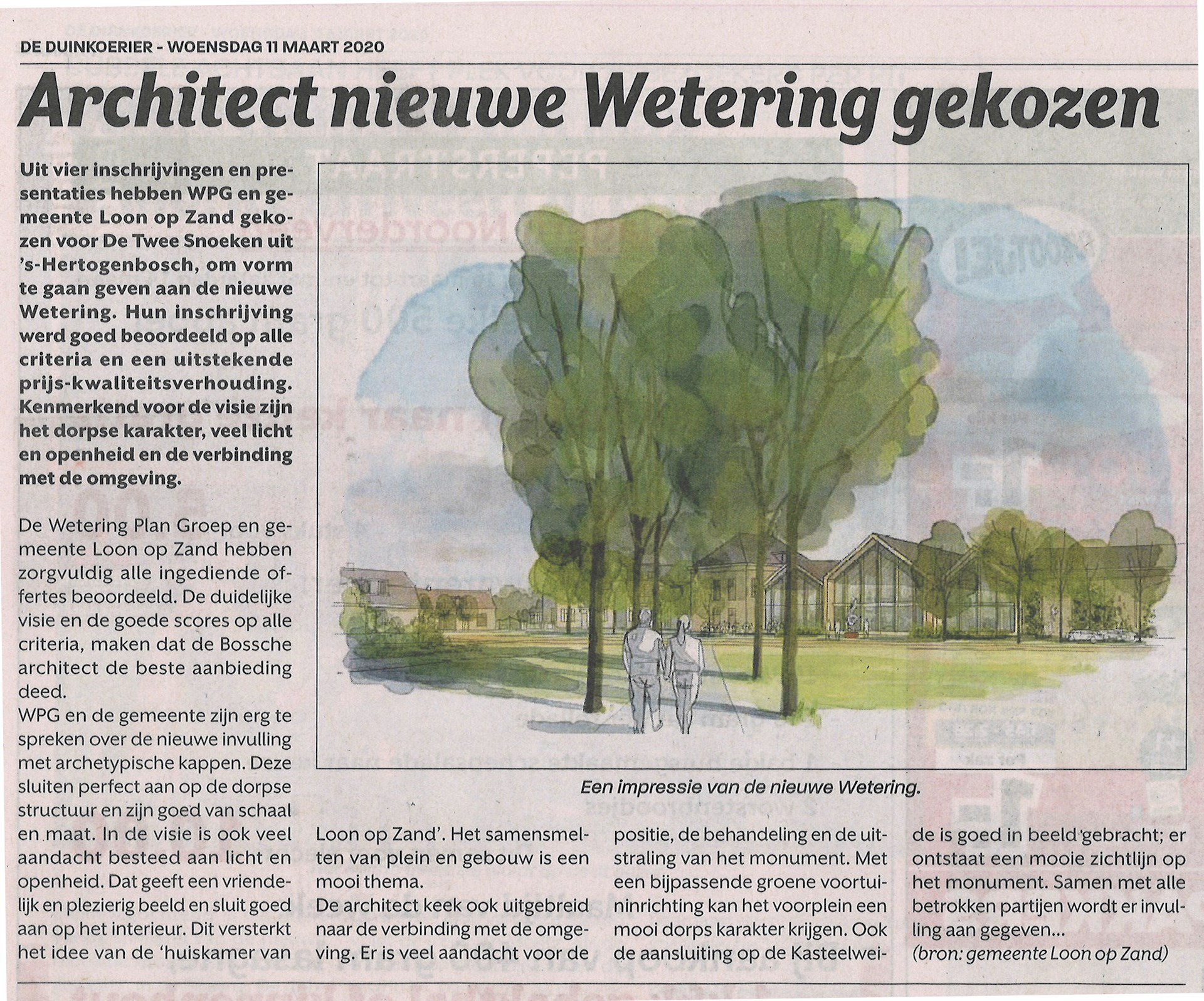 Het sport- en cultuurcentrum De Wetering bestaat uit een monumentaal fraterhuis aan de Kloosterlaan, een sporthal en een tussengebied. De vernieuwde accommodatie moet niet alleen optimaal aansluiten op de wensen van de gebruikers, maar ook op de locatie in het centrum van het dorp. We besteden veel aandacht aan een mooie inpassing in het landschap met goed zicht op de omgeving, zoals het Witte Kasteel en het centrum rondom de kerk en De Kiosk. Ook een uitnodigende entree en een dorpsplein horen bij een dorpshuis. Daarbij verdient Loon op Zand een duurzaam dorpshart, met een energiezuinig gebouw dat milieubewustzijn uitdraagt naar haar inwoners.