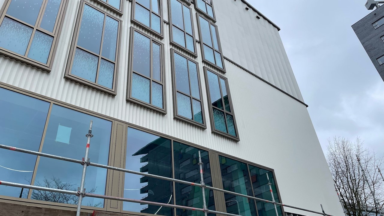 De nieuwbouw voor GGD Gelderland-Zuid in Nijmegen is inmiddels grotendeels uit de steigers! De door het werk van beeldend kunstenaar Jan Schoonhoven geïnspireerde gevelpatronen worden prachtig zichtbaar.