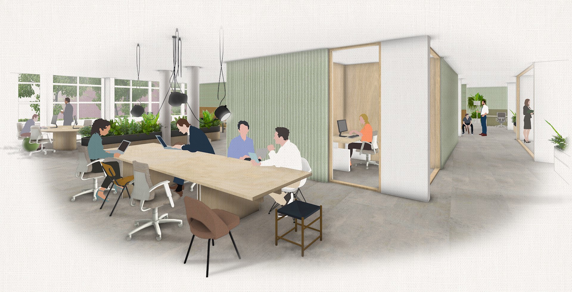 We benutten de bestaande kwaliteiten van het pand en maken het tegelijkertijd logischer en prettiger. Het rijke mijnverleden van de regio brengen we terug in het interieur, waardoor Hanenhof ook een betekenisvolle plek wordt. Verankerd in de gemeenschap van Sittard-Geleen.