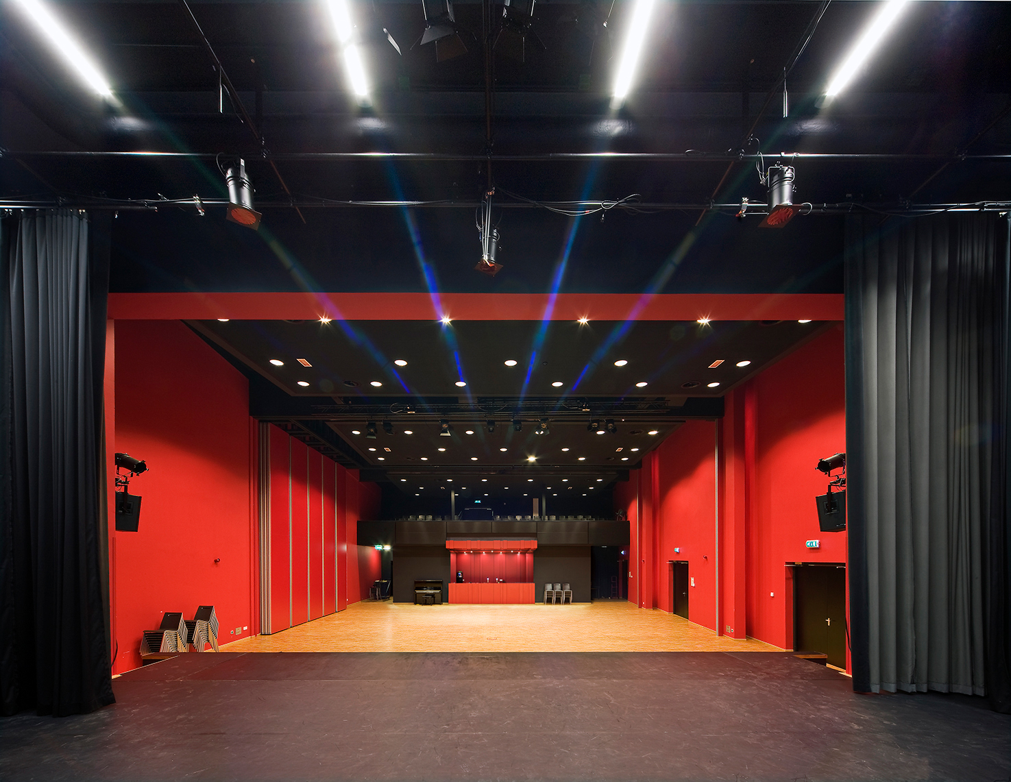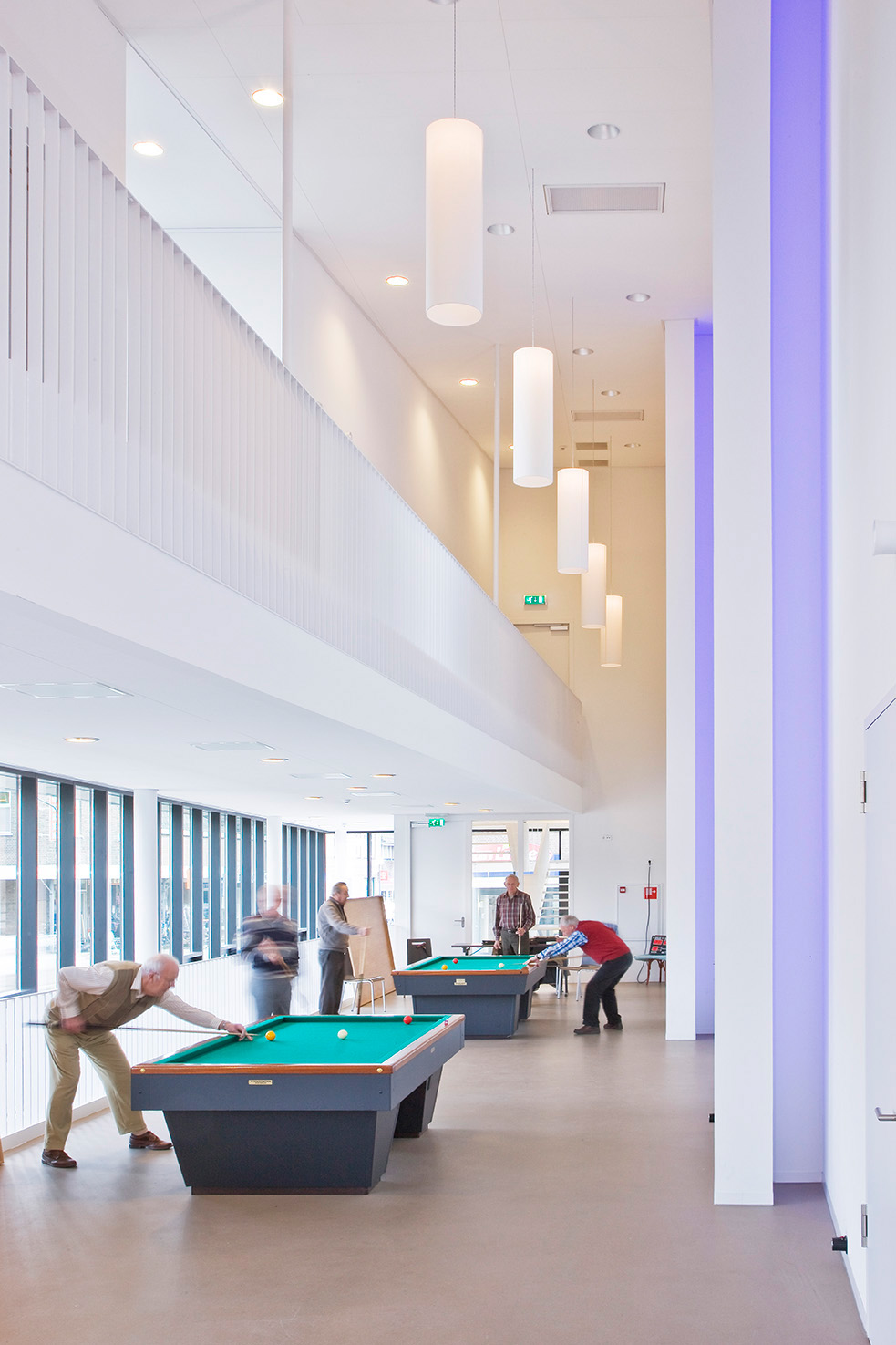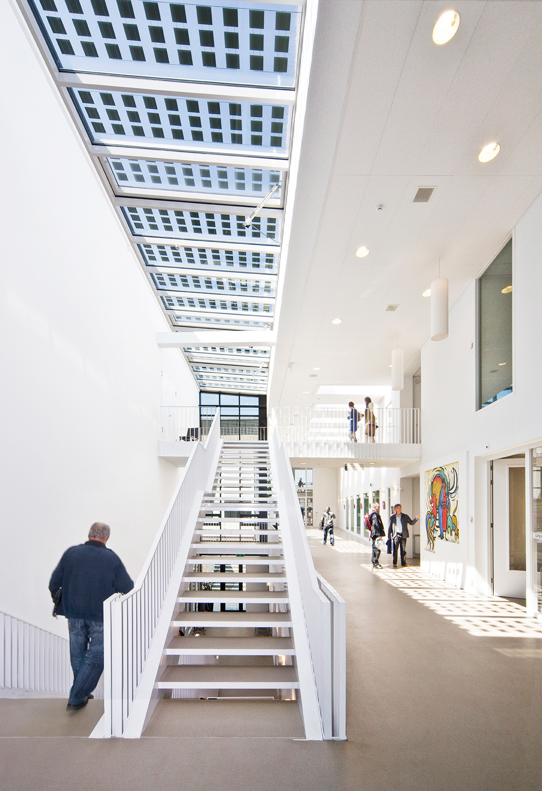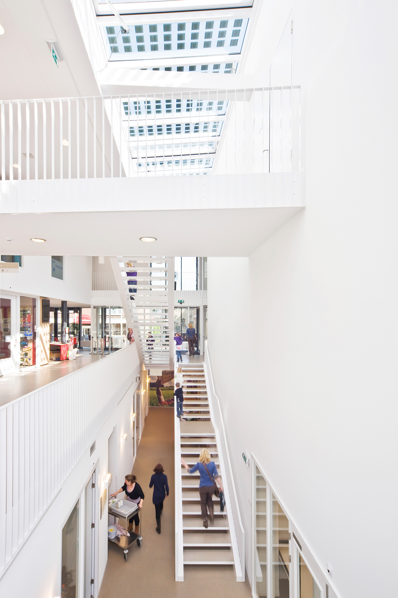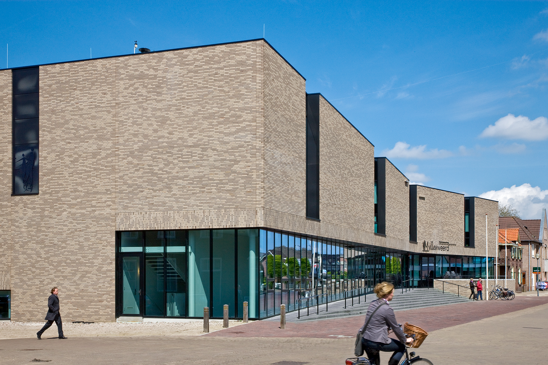 BewarenVoor de hoofdopzet van het gebouw is gekozen voor het aansluiten op de bel-etage van het bestaande gemeentecomplex, zodat een vanzelfsprekende verbinding ontstaat met het bestaande gemeentehuis. Daarmee zijn de ruimten voor de bibliotheek, de muziekschool en de lokale omroep half verdiept komen te liggen. De grote multifunctionele zaal, de foyer en het café liggen op dezelfde hoogte als het gemeentehuis. Op de laag daarboven liggen de kantoorruimten, die door diverse lokale organisaties worden gebruikt.