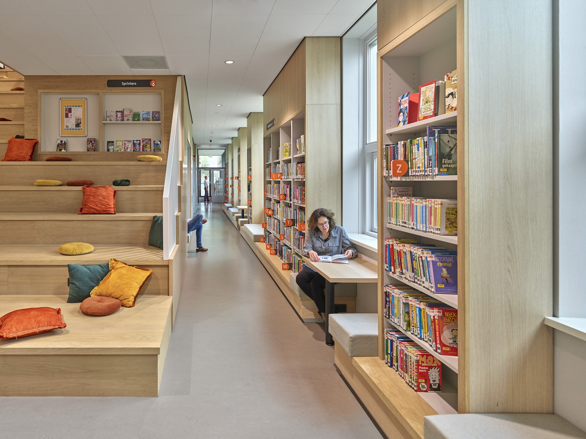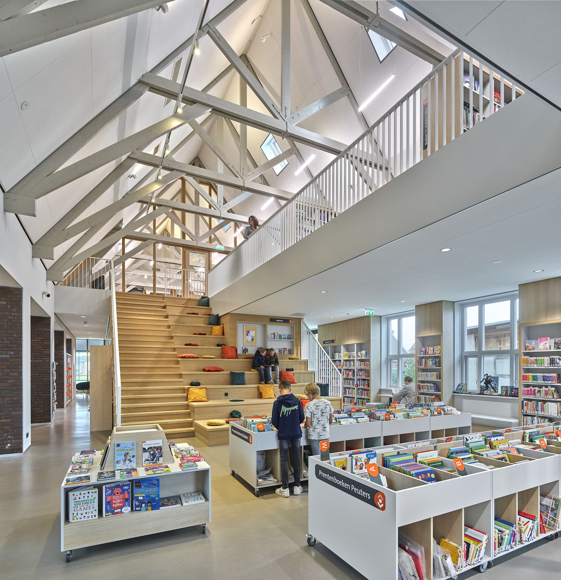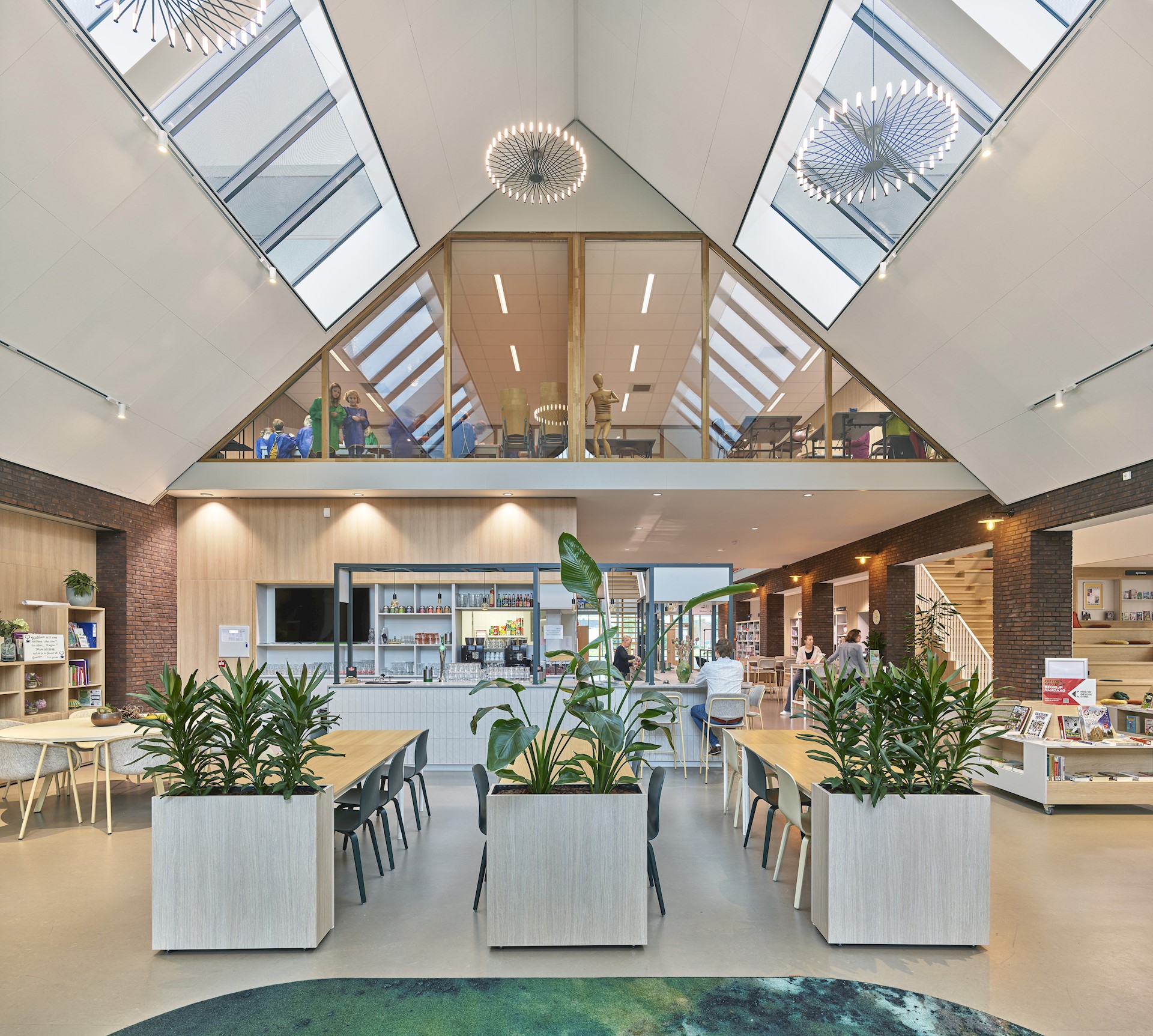 Dankzij de transparante voorgevel krijgen voorbijgangers vanaf de Kerkstraat prachtig zicht op de sfeervolle bijeenkomstruimte. In deze mix van café en bibliotheek lopen inwoners spontaan binnen voor een kopje koffie of het lenen van een boek. Samen met een gezellig terras aan de Kerkstraat geeft deze transparante voorgevel het dorpshuis een uitnodigend karakter. De mooie detaillering, de ornamenten en het ambachtelijk metselwerk gecombineerd met de houten luiken en lamellen zorgen voor warmte en sfeer. Aangelicht in de avonduren is het een pareltje aan de Kerkstraat!