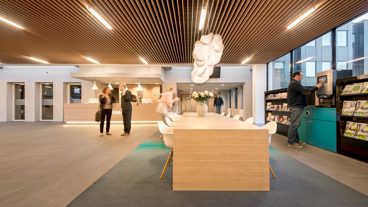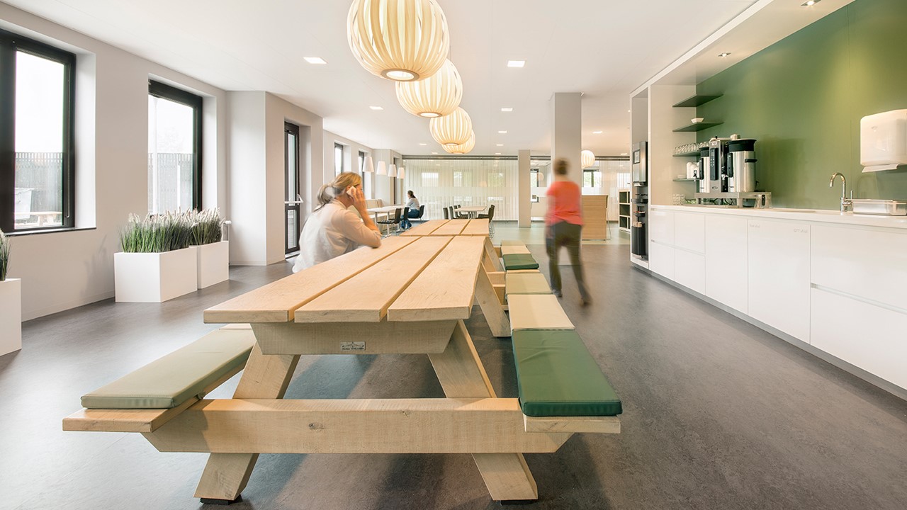 Het kantoorpand diende ook geschikt te worden gemaakt voor Het Nieuwe Werken. De opzet van het gebouw gaf ons de mogelijkheid om op een eenvoudige manier een eigentijds kantoorconcept in te bouwen. De open kantooromgeving is voorzien van uiteenlopende typen werkplekken, die taakgericht werken faciliteren.