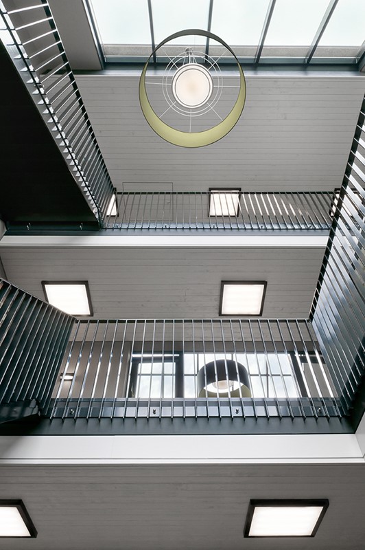 De Twee Snoeken heeft ook de opdracht gekregen voor het ontwerpen van het interieur. In nauw overleg met het bestuur en de gebruikers is gekozen voor de verrassend goed passende inrichting, die is afgestemd op de omgeving door de toepassing van verschillende groen- en aardetinten.