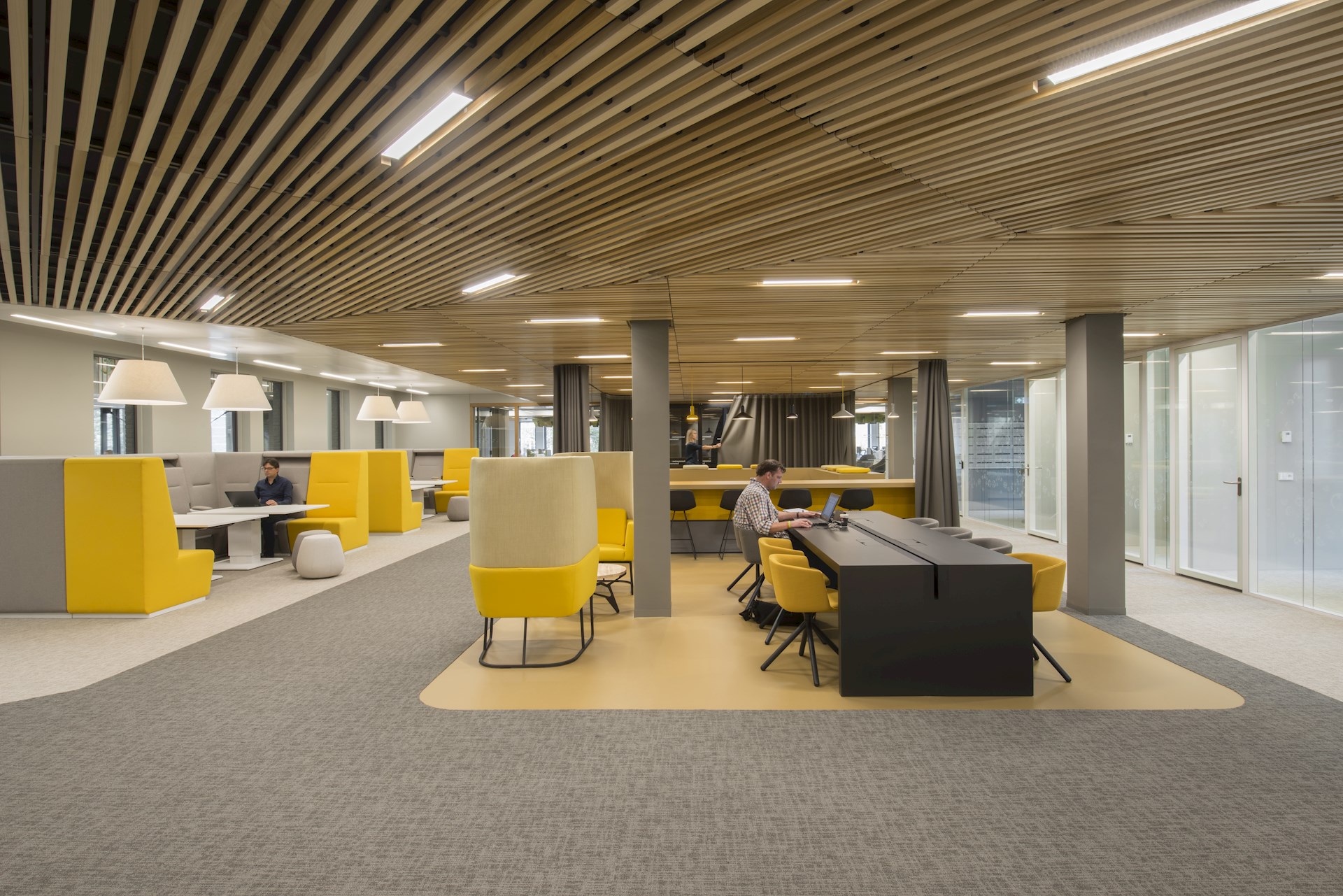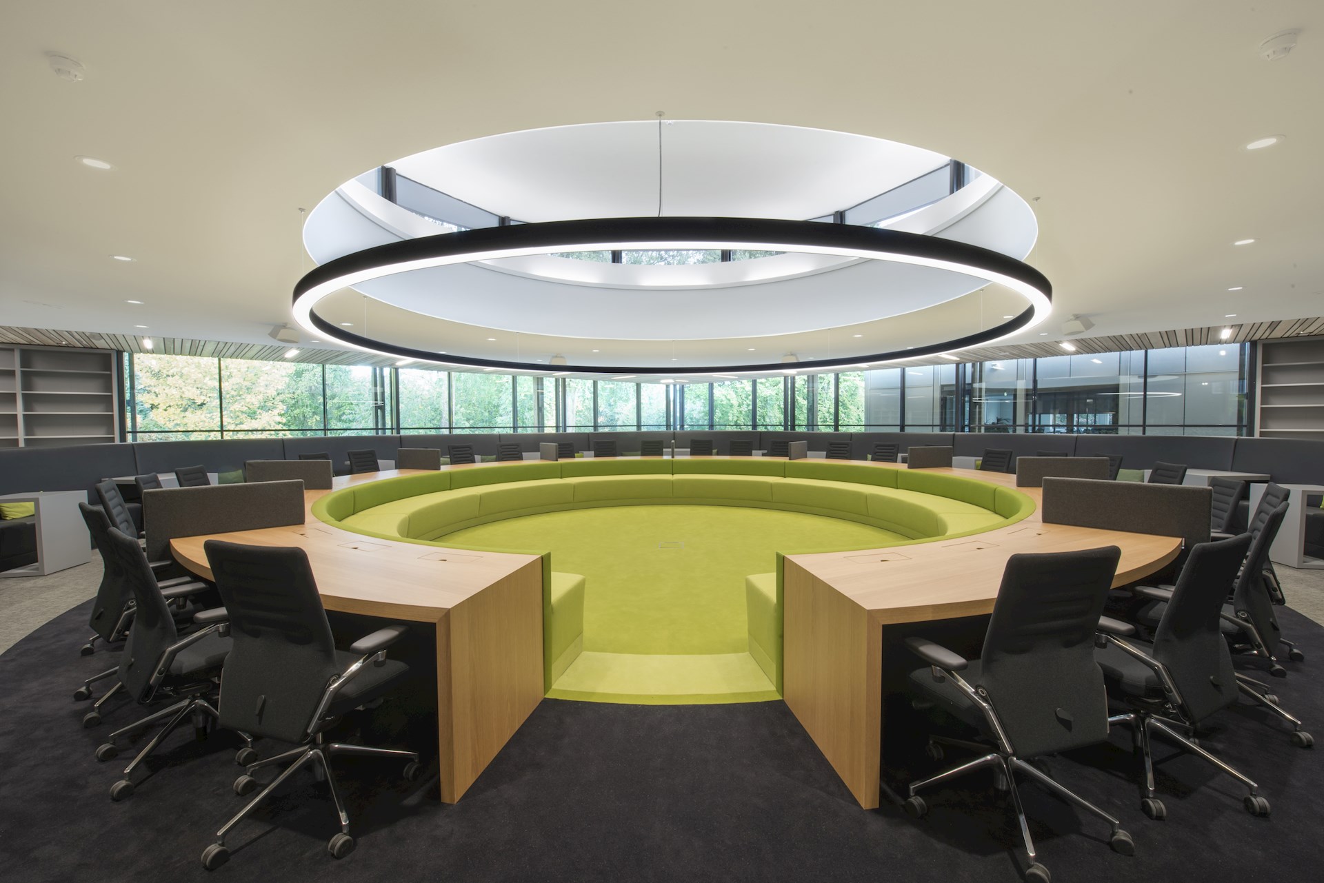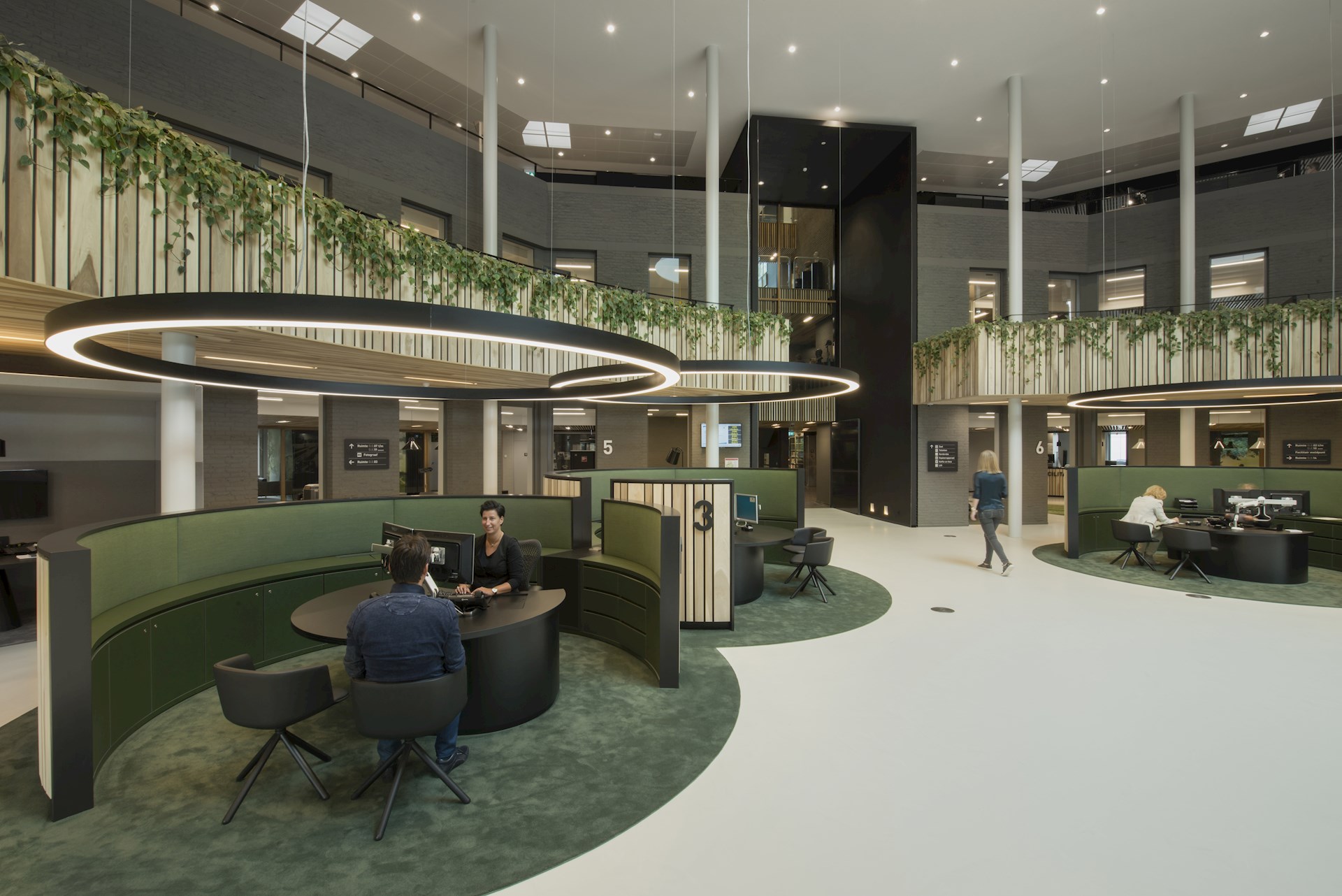 Op die verdieping hangt een ring waaraan wordt gewerkt. Door het open contact met de hal wordt de relatie tussen ambtenaren en het publieksdomein verbeterd. Ook het werkdomein van het bestuur is vanuit de hal zichtbaar.
