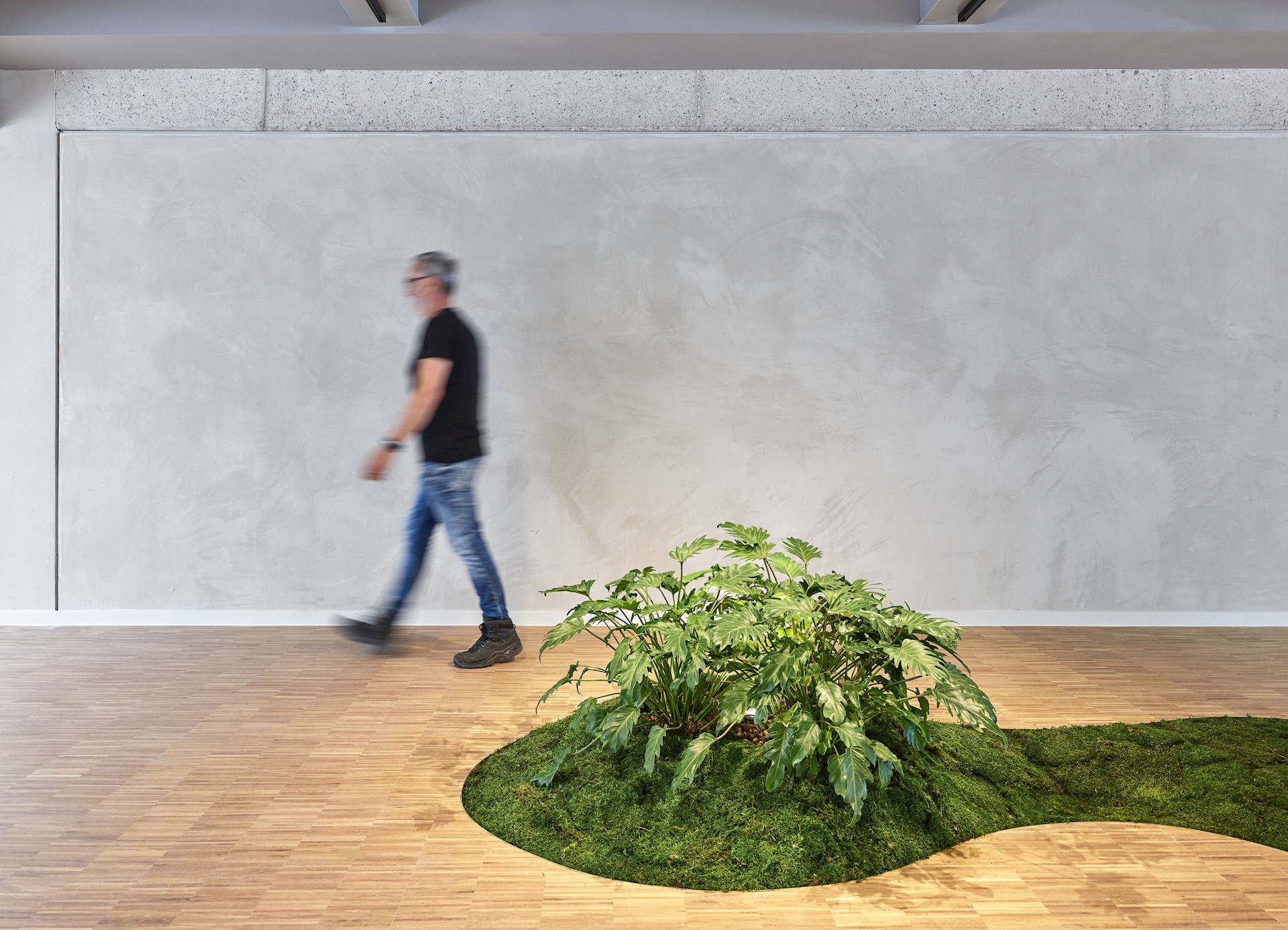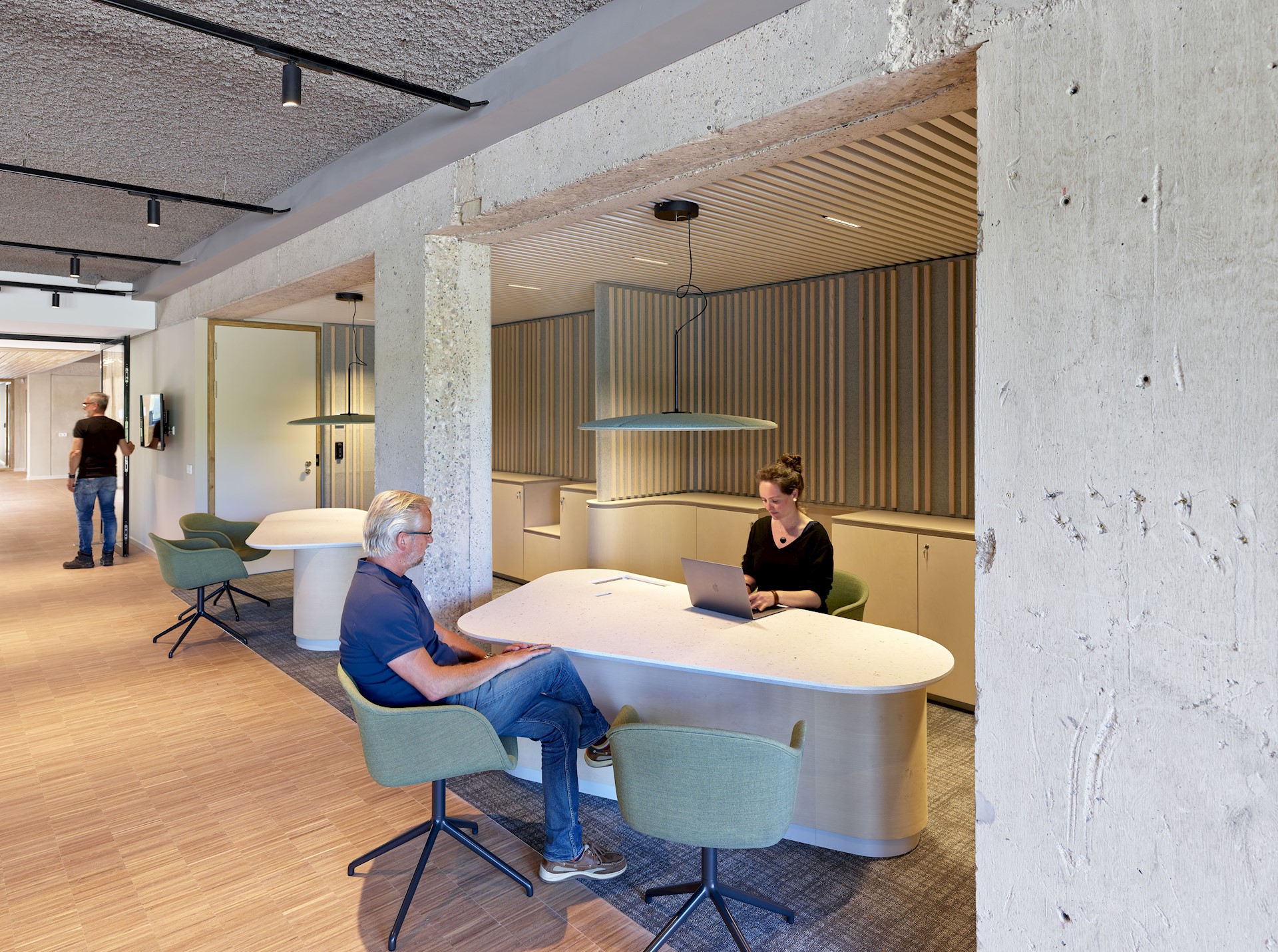 Omdat het oude gemeentehuis een goede constructieve betonstructuur had, is dit casco hergebruikt; het meest duurzaam en circulair bouwen is namelijk níet bouwen. De heldere structuur van het bestaande casco was een belangrijke aanleiding voor het ontwerp van zowel het interieur als het exterieur. Aan de binnenzijde blijft de betonstructuur van kolommen en balken in het zicht en tekent het zich af in met name de wat grotere ruimtes. Dankzij het naar voren steken van de stabiliteitsschijven is deze structuur aan de buitenzijde wel goed te herkennen. Deze schrijven zorgen in een consistent ritme voor ordening van de gevel en schaalverkleining van het gebouw.