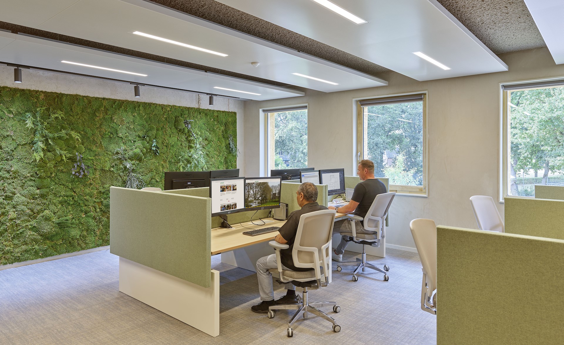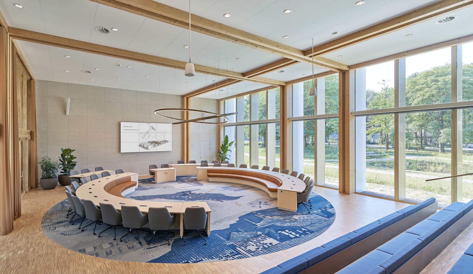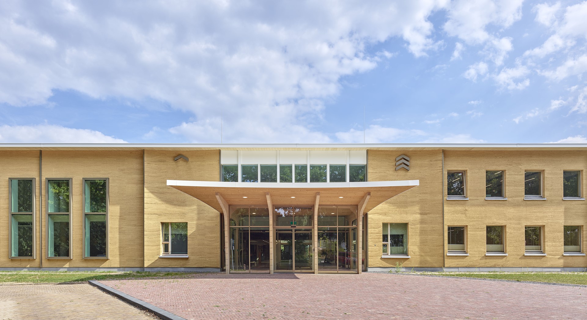 BewarenDe gemeente Voorst vroeg ons om een aantrekkelijk en uniek gemeentehuis te ontwerpen. Een gebouw dat niet zomaar een willekeurig kantoor, maar écht een Huis van de gemeente is. Het bestaande gebouw is begin jaren ’80 gerealiseerd en voldeed niet meer aan de huidige duurzaamheids- en comforteisen. Omdat het oude gemeentehuis wel een goede, constructieve structuur had, hebben we besloten deze betonnen constructie te handhaven. Verder is het gebouw helemaal circulair gestript tot het casco en opnieuw duurzaam opgebouwd. We hebben ernaar gestreefd om zoveel mogelijk materialen toe te passen die bij de productie ervan CO2 hebben opgevangen in plaats van hebben uitgestoten; zogenaamde biobased materialen.