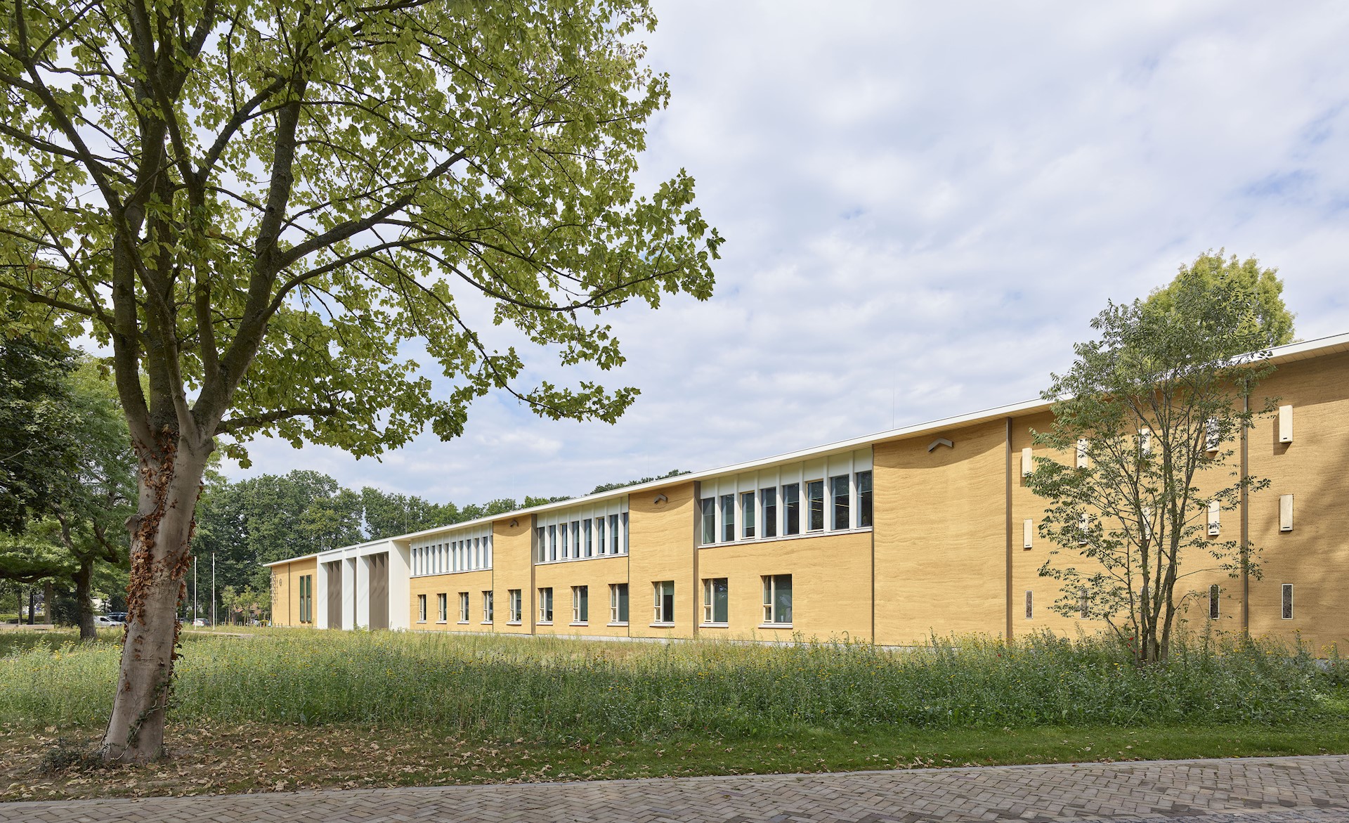 Vervolgens is het gehele gebouw ingepakt met een nieuwe, goed isolerende buitengevel. Hierbij hebben we ervoor gezorgd dat de constructieve structuur ook van buiten afleesbaar blijft. Niet zo letterlijk als in het Broekbakema-ontwerp, waarbij de constructie daadwerkelijk buiten staat, maar subtiel en indirect vormen de lijnen en schijven in de gevel een poëtische manifestatie van de achterliggende constructie.