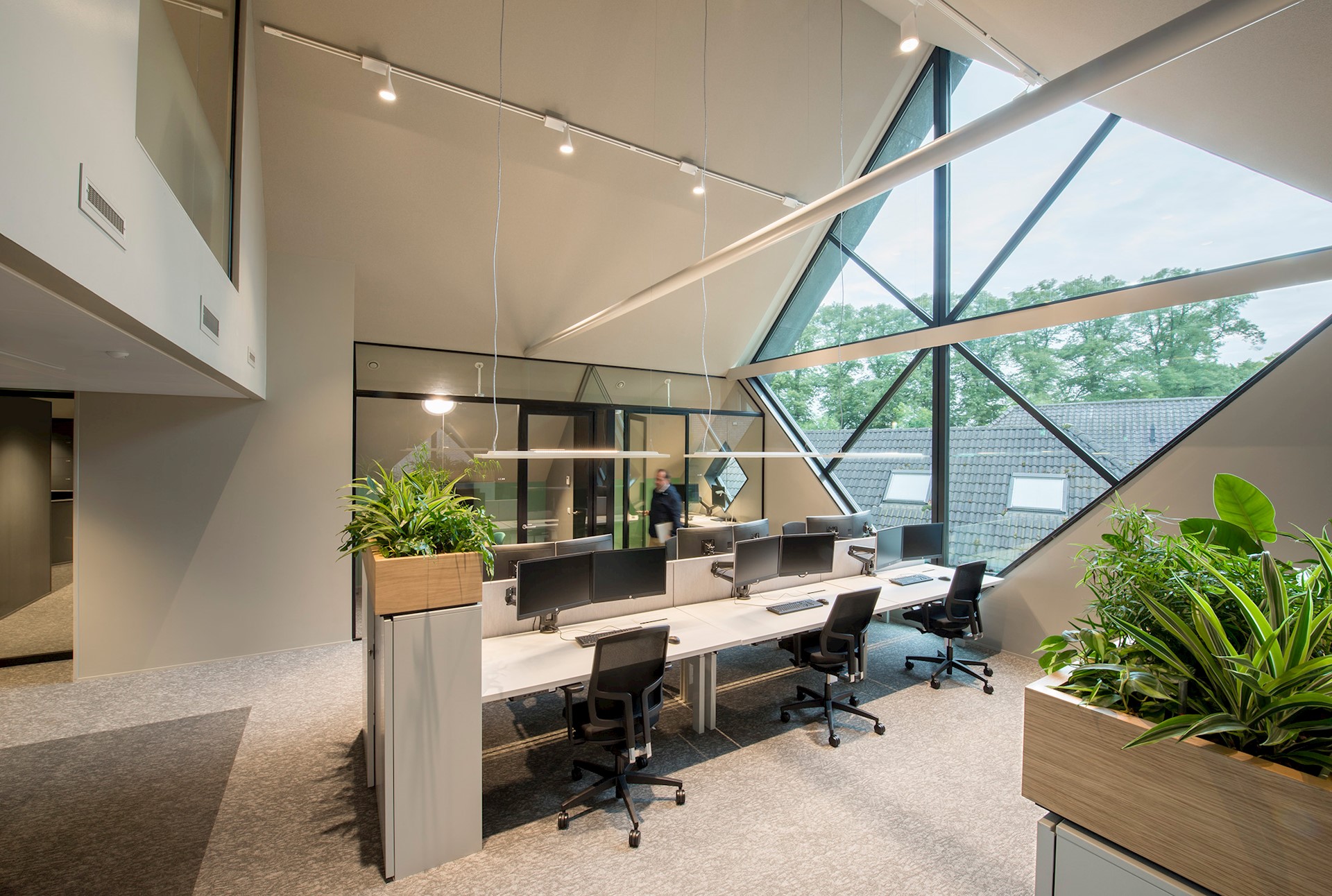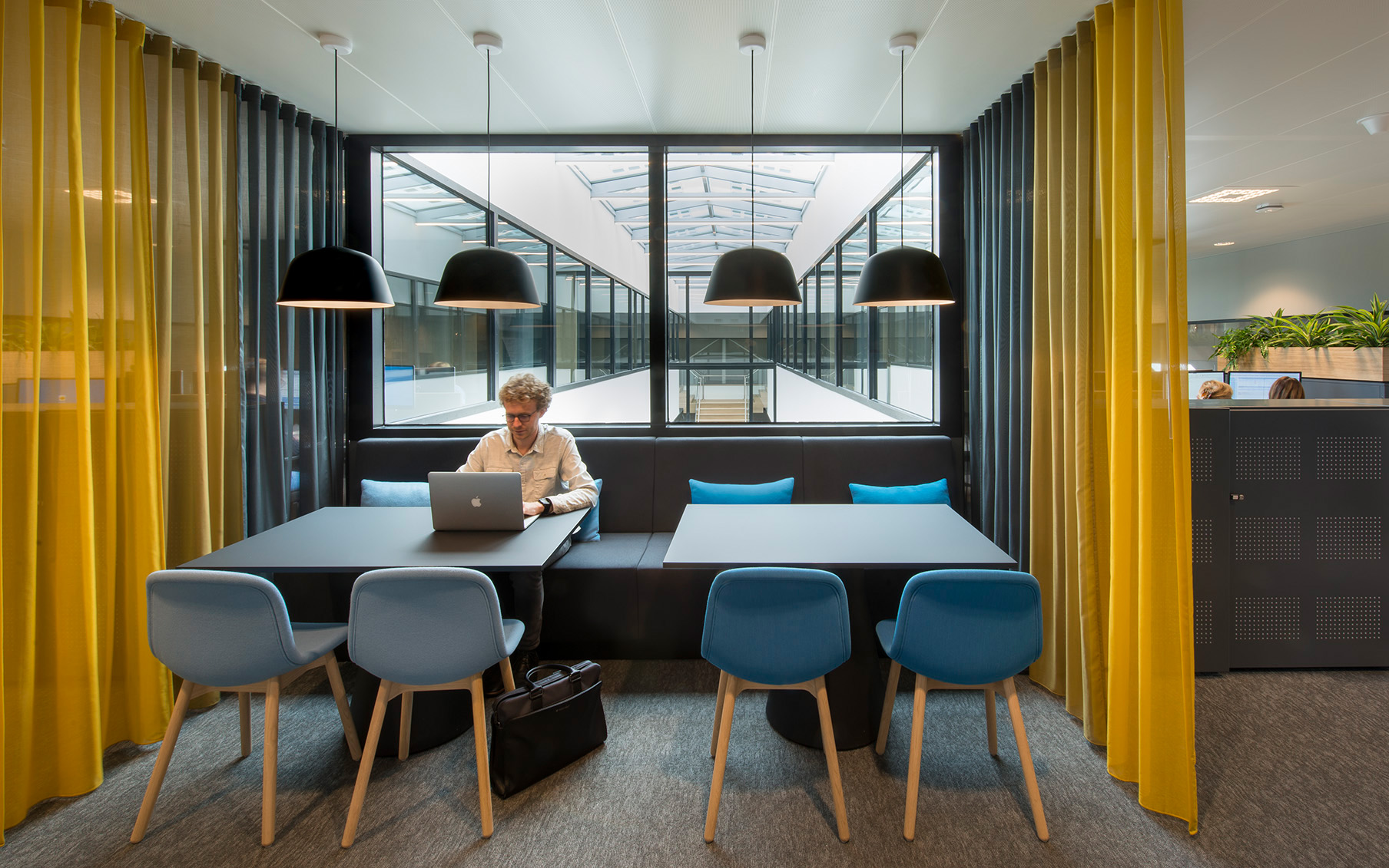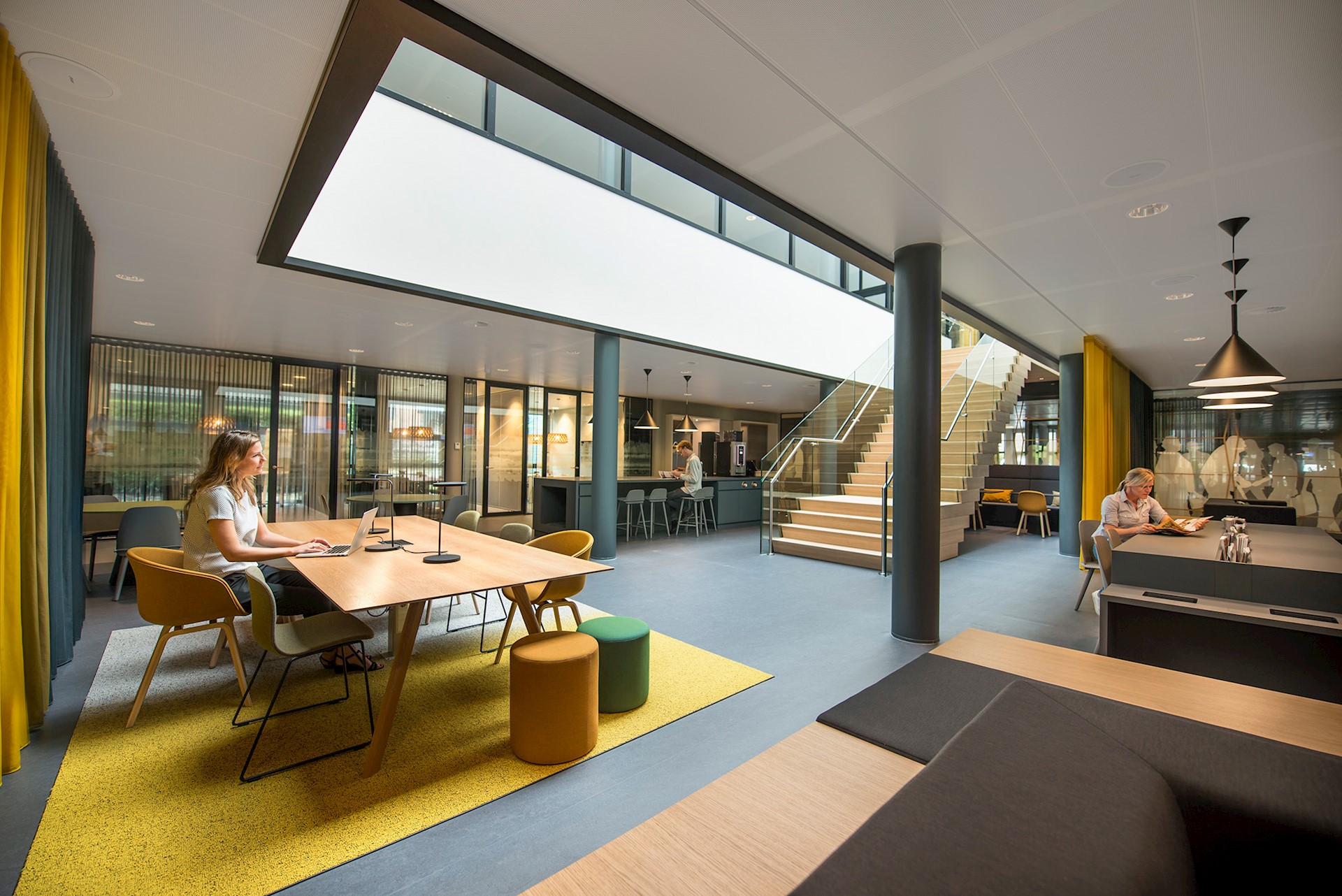 Vervolgens diende het kantoorpand qua indeling geschikt te worden gemaakt voor Het Nieuwe Werken. De opzet van het gebouw in deze vernieuwde hoofdvorm gaf ons de mogelijkheid om op een slimme manier een toekomstbestendig kantoorconcept in te passen. De open kantooromgeving is voorzien van uiteenlopende typen werk- en overlegplekken die taakgericht werken faciliteren.