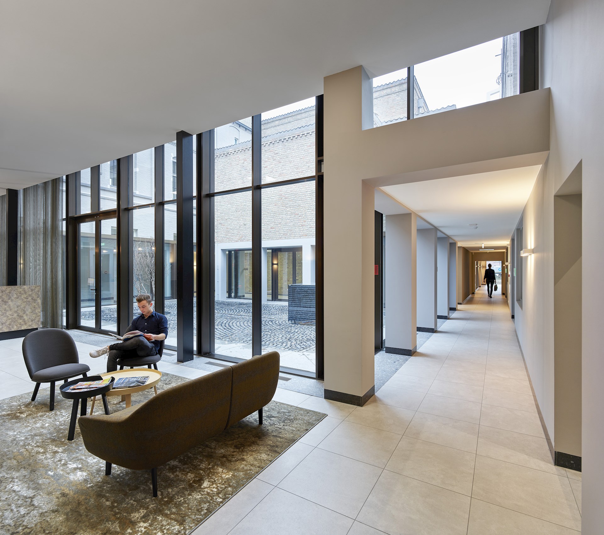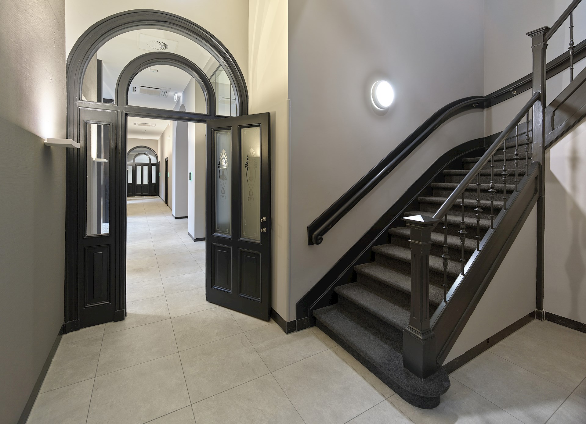 Overal in het gebouw zijn oorspronkelijke details zorgvuldig hersteld, op sommige plekken opnieuw zichtbaar gemaakt en vervolgens gecombineerd met eigentijdse interieurelementen en moderne voorzieningen. Een wandeling door het gebouw wordt op deze manier een tijdreis door de gelaagdheid van de rijke geschiedenis van dit prachtige pand.