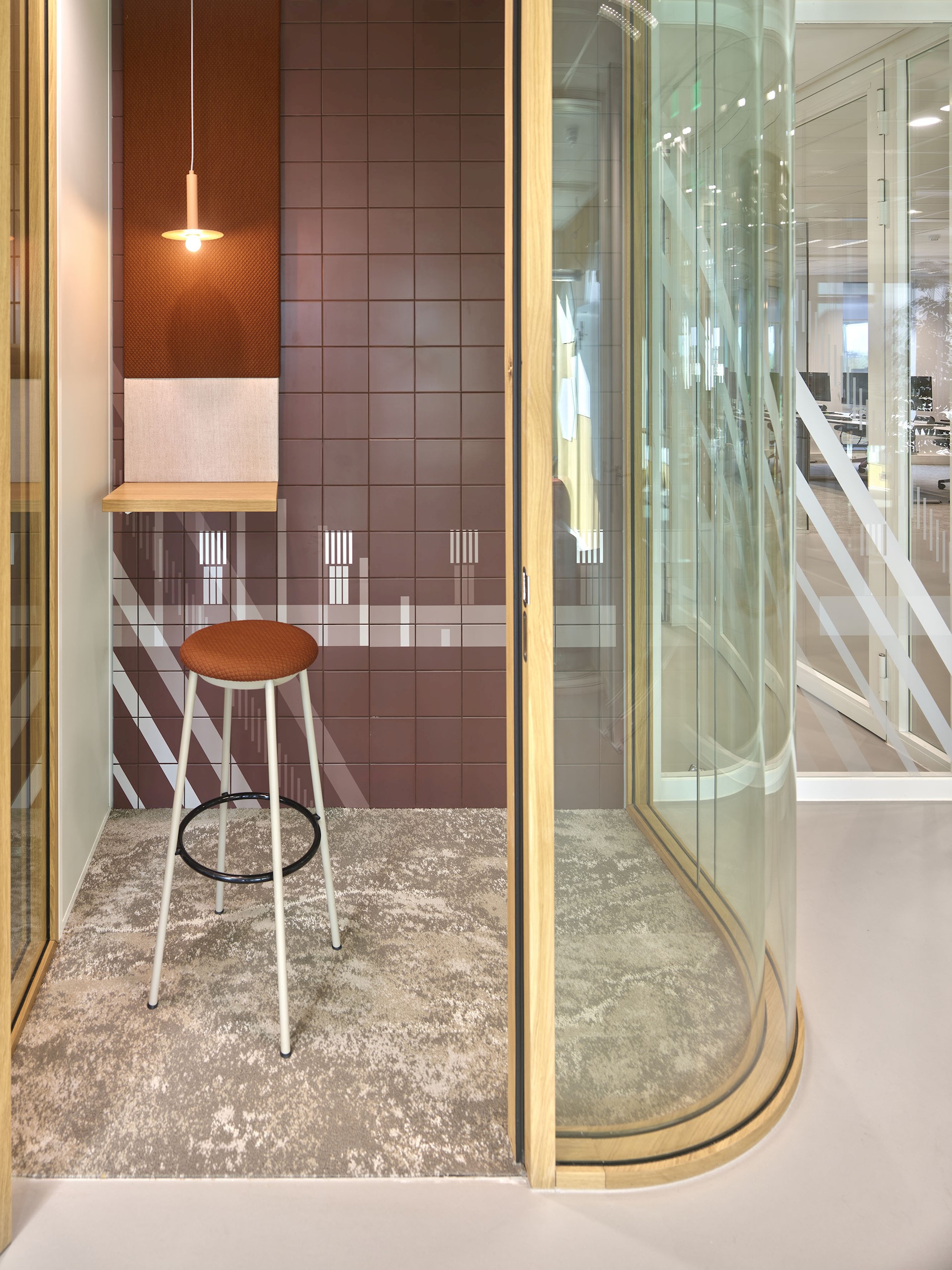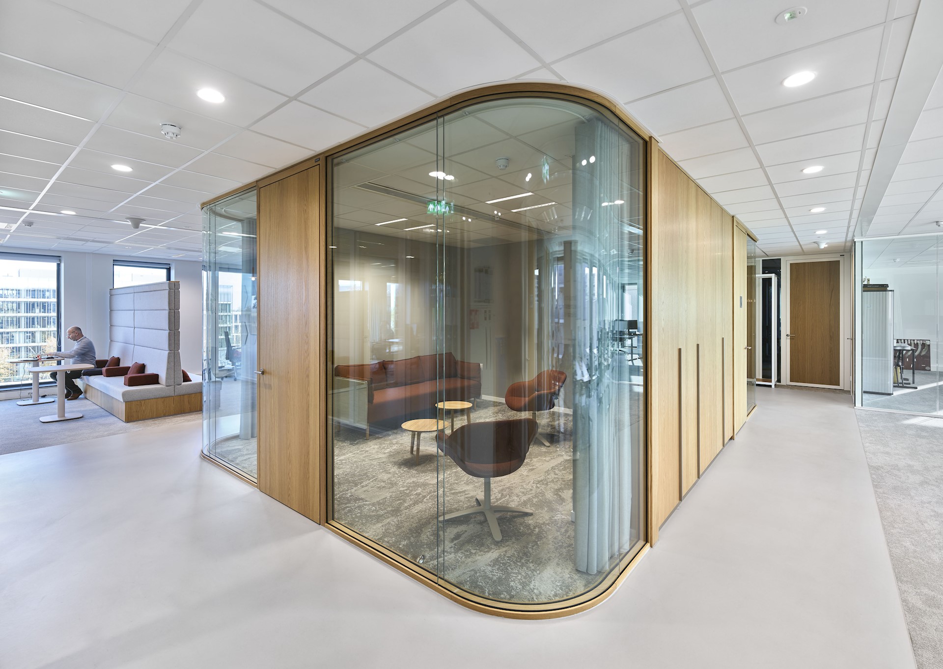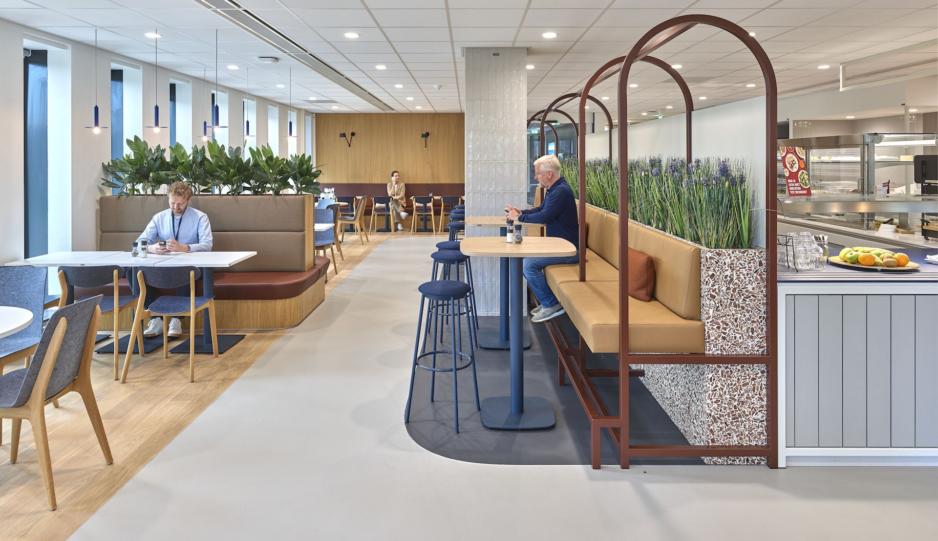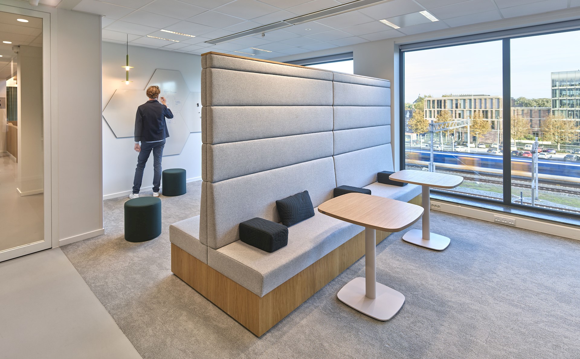 Op iedere verdieping liggen aan de vide dynamische ontmoetingsplekken waar medewerkers iets drinken, even bijpraten of kort overleggen. Vanuit daar lopen medewerkers de kleine vergaderruimtes in. Het interieur van de sfeervolle vergaderruimtes heeft een moderne vormgeving, geïnspireerd op een bruin café. Gevarieerd ingericht met een breed scala aan vergadermogelijkheden zijn er ruimtes met lage en hoge vergadertafels, een ‘huiskameropzet’ en/of scrumvoorzieningen. Deze vormen een buffer naar de rustige werkzones.