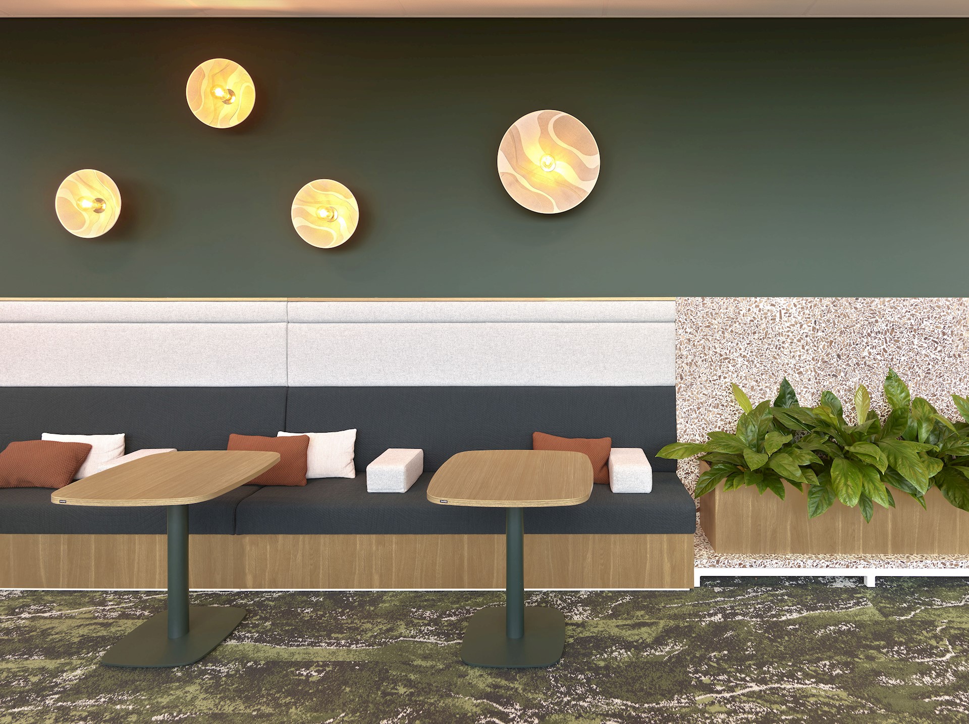 De Office ligt in het Paleiskwartier; een relatief nieuw stukje ’s-Hertogenbosch, dat de afgelopen jaren in hoog tempo is ontwikkeld. Om in het strakke kantoorpand een warme werkomgeving te creëren, hebben we het gevoel van enerzijds de bourgondische binnenstad en anderzijds de Bossche natuur naar binnen gehaald. Zo zijn elementen uit ‘s-Hertogenbosch verwerkt in de opbouw, zonering, sfeer en uitstraling van de verschillende verdiepingen. Daardoor heeft het voorheen vrij anonieme kantoorpand nu écht een eigen identiteit.