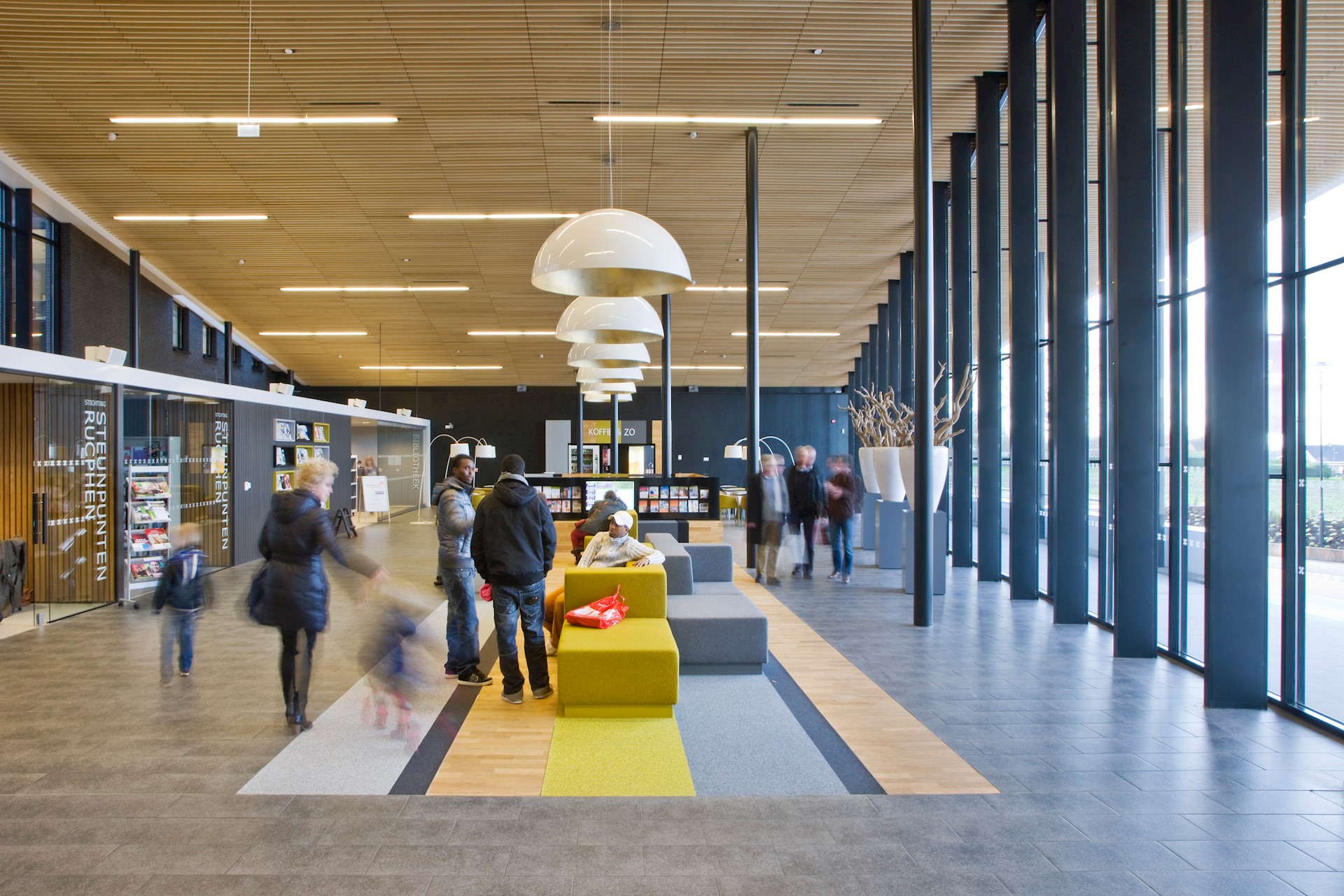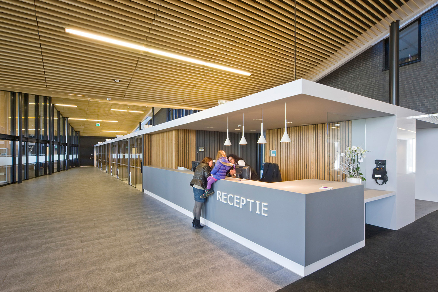 Naast de architectuur hebben wij tevens het interieur van het gebouw ontworpen. Belangrijk hierbij was om de verschillende afdelingen een eigen identiteit te geven. Er is gezocht naar lokale thema’s waarin mensen zich kunnen herkennen. Om de ontwerpideeën vervolgens te toetsen zijn gesprekken gevoerd met diverse groepen gebruikers. In deze brainstormsessies is, met behulp van moodboards een keuze gemaakt in thematiek, kleur en materiaalgebruik. Ook de grafische uitwerking van onderdelen van het interieurontwerp zijn door ons ontworpen.