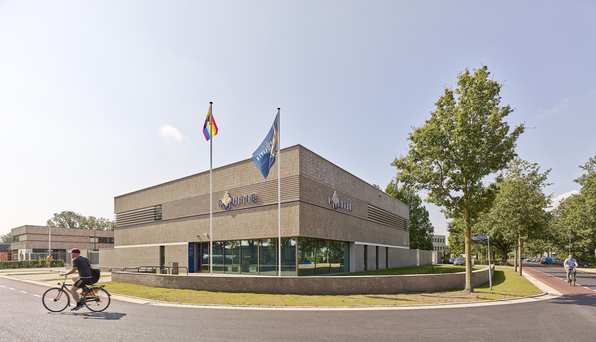 Belangrijk bij het ontwerpen van het nieuwe politiebureau was de herkenbaarheid. Het gebouw moet direct herkenbaar zijn als politiebureau met een voor bezoekers duidelijke publieksentree. Om dit te kunnen waarborgen, hebben we de gevels opgebouwd uit baksteen, een bouwmateriaal met een krachtig en robuust imago. De entree is als inham op de kop prominent aanwezig. Dankzij het contrast tussen de gesloten bakstenen gevel en de open publieksentree is de entree goed vindbaar. Ook de eenvoud van de gebouwvorm zorgt voor een herkenbaar en krachtig signaal.