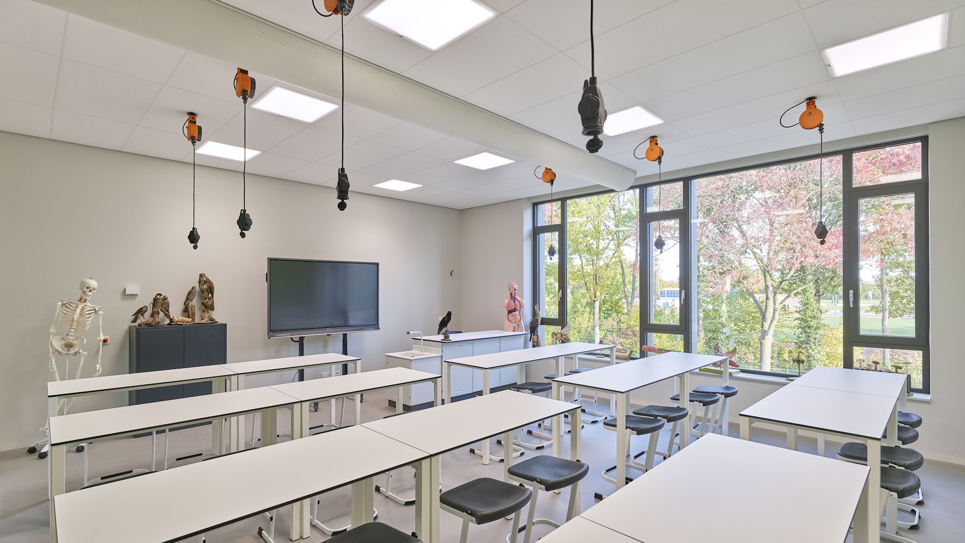 Het onderwijsgebouw en –landschap zijn nauw met elkaar verbonden. Het schoolgebouw staat als een paviljoen in het groene landschap. Ook functioneel gezien bestaat er een verbinding tussen het gebouw en het landschap. Onder andere doordat alle praktijklokalen voorzien zijn van deuren die direct grenzen aan het terrein. Het omliggende landschap biedt plek aan diverse onderwijsfaciliteiten, waaronder een amfitheater opstelling, sportvoorzieningen, een dierenweide met verblijf en een loods voor machines en tractoren. In samenwerking met Burobol landschapsarchitecten is het plan nader vormgegeven.