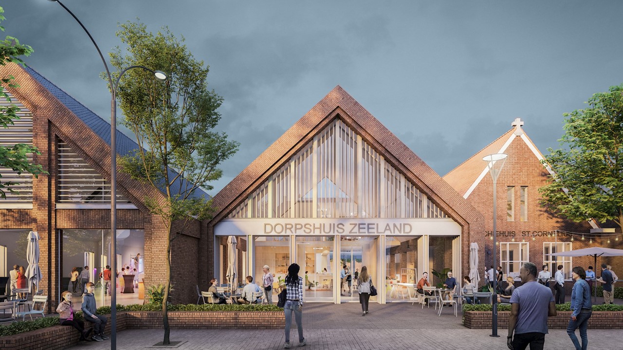 Midden in het dorp, tegenover de kerk, verrijst een dorpshuis waar iedere Zeelander zich thuis voelt en er altijd wel iets te doen is. Het eigentijdse ontwerp sluit perfect aan op de architectuur in haar omgeving en het oude parochiehuis dat in deze nieuwbouw wordt geïntegreerd.