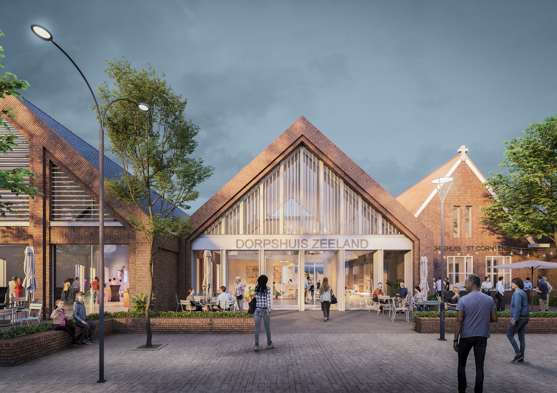 Midden in het dorp, tegenover de kerk, verrijst een dorpshuis waar iedere Zeelander zich thuis voelt en er altijd wel iets te doen is. Het eigentijdse ontwerp sluit perfect aan op de architectuur in haar omgeving en het oude parochiehuis dat in deze nieuwbouw wordt geïntegreerd.
