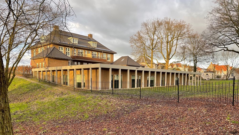 Vanwege een tekort aan ruimte is het pand uitgebreid met een verdiepte aanbouw, harmonieus ingepast in het aflopende dijklandschap. Het souterrain is voorzien van een sedumdak, waardoor het naadloos opgaat in de groene vestingwerken. Het vernieuwde gezondheidscentrum vormt samen met het monument een samenhangend geheel. Dankzij deze uitbreiding heeft het historische pand een toekomstbestendige functie binnen de gemeenschap gekregen, met behoud van de karakteristieke uitstraling.