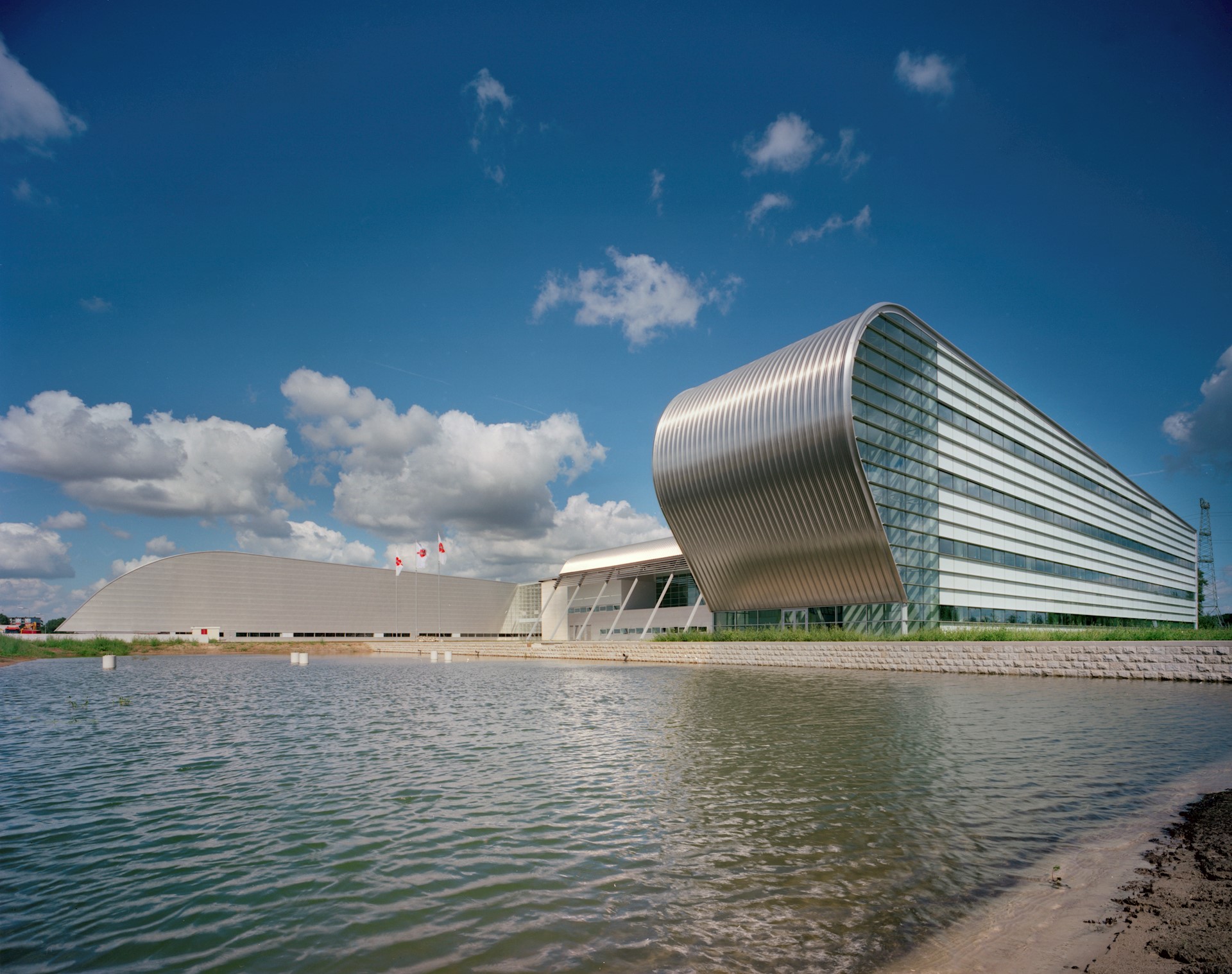 De architectuur van het complex, met de karakteristieke gebogen dak- en gevellijnen, is al sinds 2002 een eyecatcher vanaf de A2. In dat oorspronkelijke ontwerp hebben wij al rekening gehouden met mogelijkheden tot uitbreiding. Zo is het gebouw recent voorzien van een prachtige Flagship Store. Ons team heeft ook in de nieuwe aanbouw de kenmerkende uitstraling van het hoofdkantoor doorgetrokken.