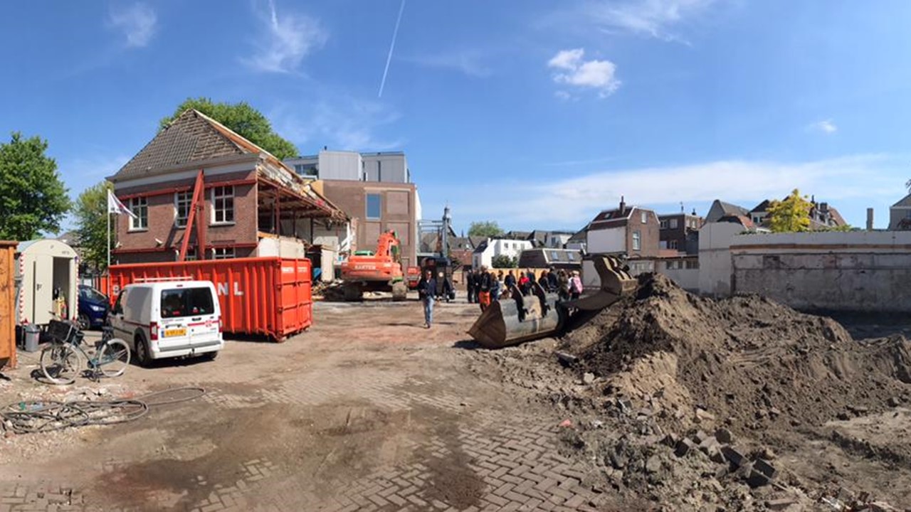 We kregen namelijk een rondleiding van een archeoloog van BAAC. Ze vertelde ons over bijzondere archeologische vondsten, zoals muren van oude arbeidershuisjes, kelders, een stookplaats en (gemetseld) rioolverloop. De archeologen brengen alles in kaart, binnenkort verdwijnt het meeste weer onder het zand en de nieuwe funderingen. Enkele delen van de opgravingen blijven zichtbaar, ook na oplevering van het plan.