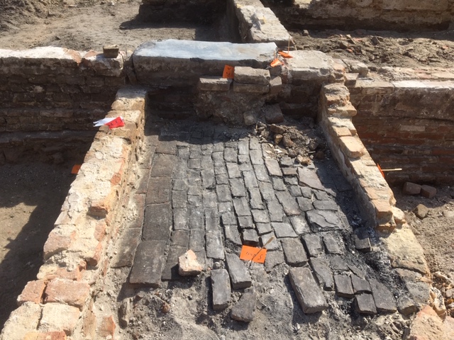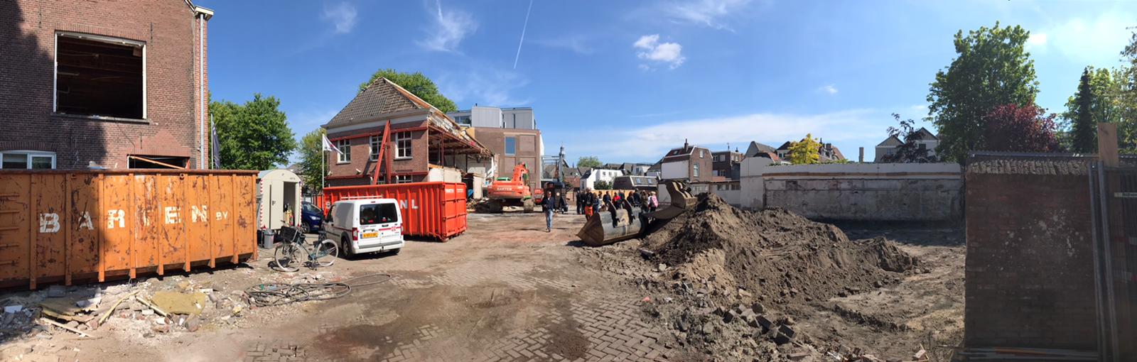 We kregen namelijk een rondleiding van een archeoloog van BAAC. Ze vertelde ons over bijzondere archeologische vondsten, zoals muren van oude arbeidershuisjes, kelders, een stookplaats en (gemetseld) rioolverloop. De archeologen brengen alles in kaart, binnenkort verdwijnt het meeste weer onder het zand en de nieuwe funderingen. Enkele delen van de opgravingen blijven zichtbaar, ook na oplevering van het plan.