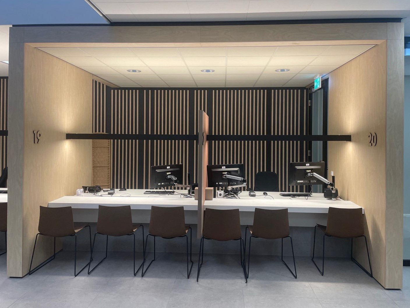 Zo is er een echt stadsloket 2.0 ontstaan. Het dient niet voor niets als pilot voor de vernieuwing van alle Stadsloketten in Amsterdam. Het is een frisse omgeving waarin burgers worden ontvangen; persoonlijk en inclusief. Daarbij is het nieuwe stadsloket flexibel in gebruik én zijn er duurzame ontwerpkeuzes gemaakt. Bestaand meubilair is opnieuw ingezet of 100% refurbished en ook het tapijt uit de oude locatie is maximaal hergebruikt.