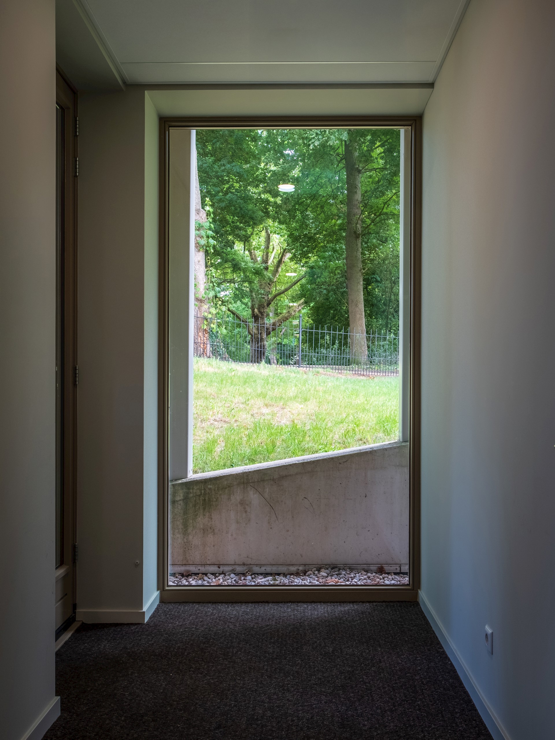 Centraal in het souterrain ligt een groene patio die alle omliggende ruimten van daglicht voorziet. Ook geeft het een glimp van de omliggende monumentale bomen en het historische gebouw. De half-verdiepte spreekkamers hebben een bijzonder uitzicht over het landschap en de stadswal. De terugliggende ramen ten opzichte van de colonnade zorgen voor privacy en beperken hinderlijke zoninval.