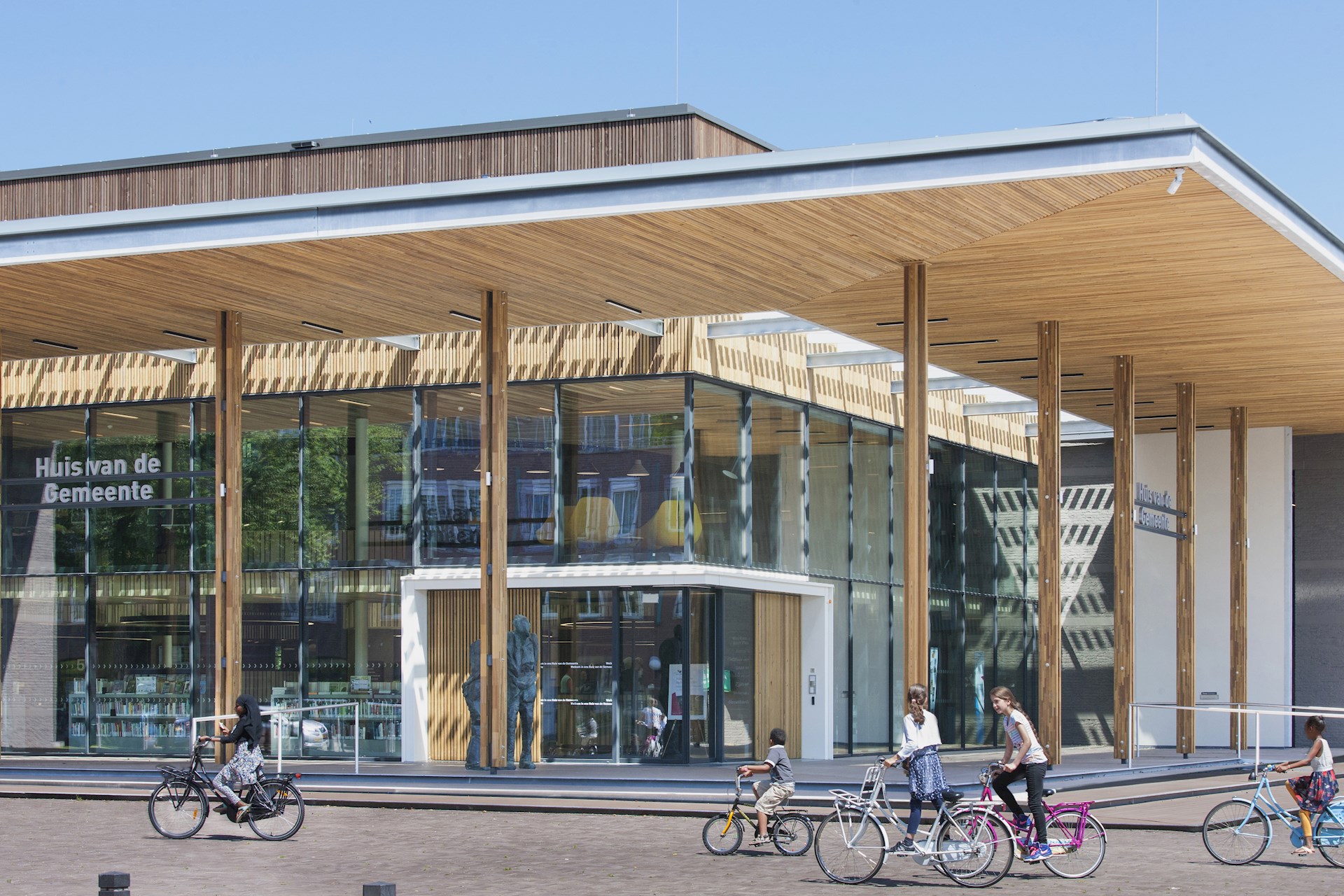 Het ontwerp gaat uit van een alzijdig gebouw met een gezicht naar het centrum en naar het park. De voorruimte bij de hoofdentree fungeert als een publieksplein. Het nodigt mensen uit om naar binnen te lopen in de transparante publiekshal. De luifel boven de entree zorgt voor schaduw op de zuidgevel. Hierdoor kan die gevel, ondanks de oriëntatie op het zuiden, toch de gewenste transparantie krijgen, zodat het voor de burger zichtbaar wordt wat er in het Huis van de Gemeente gebeurt.