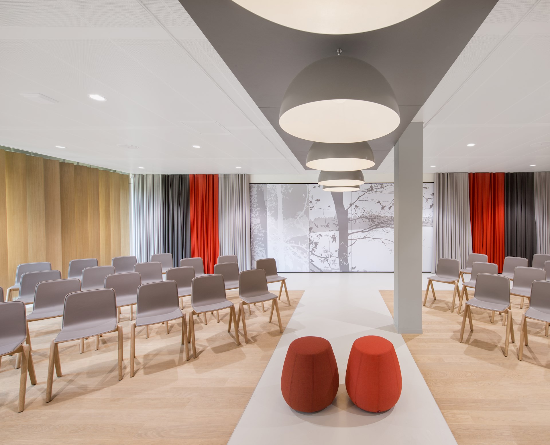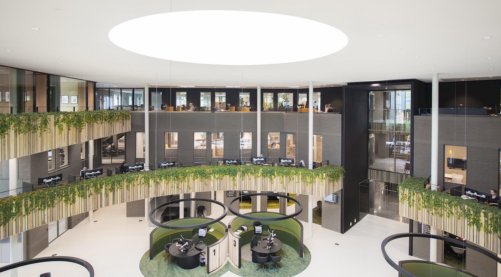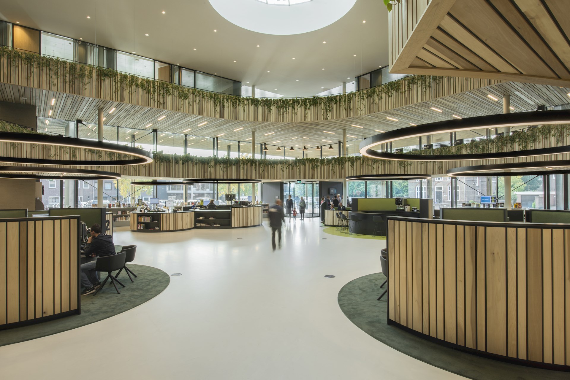Op die verdieping hangt een ring waaraan wordt gewerkt. Door het open contact met de hal wordt de relatie tussen ambtenaren en het publieksdomein verbeterd. Ook het werkdomein van het bestuur is vanuit de hal zichtbaar.