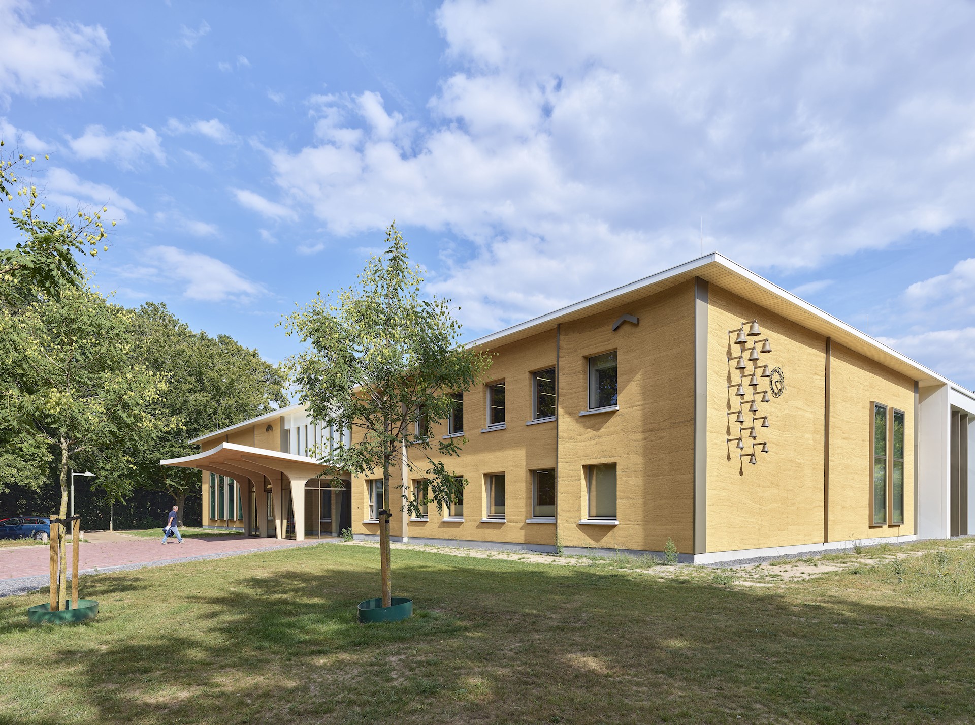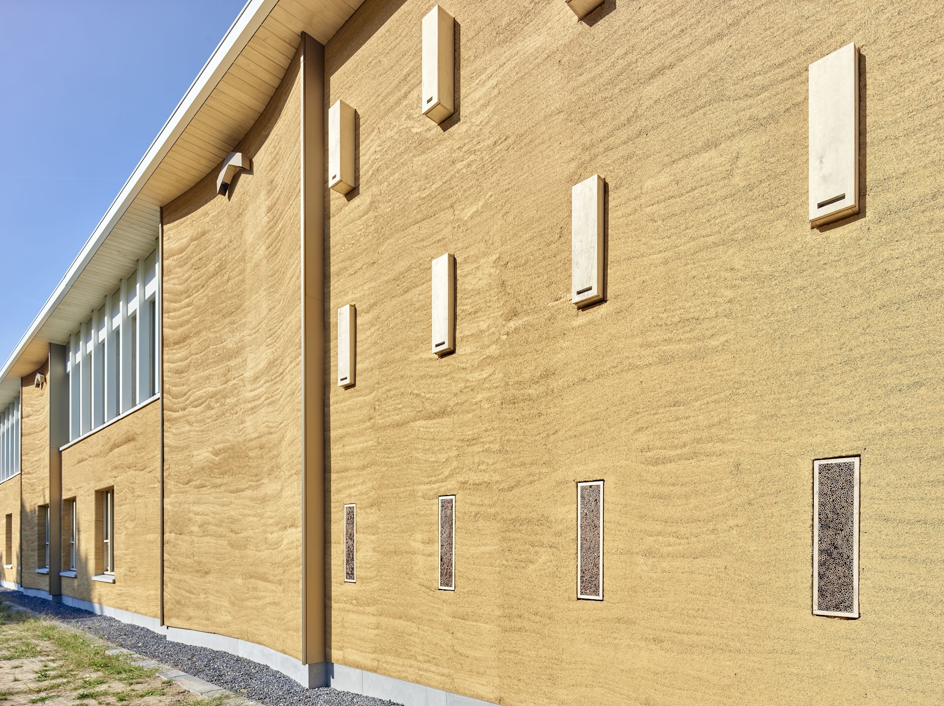 Door de gevel op te trekken uit kalkhennep krijgt het gebouw een gelijkmatig omhulsel en daardoor een winddichte gevel. De 38 cm dikke gevel heeft met een rc-waarde van 5,7 m2 K/W een sterk isolerend vermogen. Doordat het materiaal ademend werkt en een efficiënte vochtregulator is, isoleert het nog beter wanneer het koud is. Deze vochtregulerende werking draagt bij aan een comfortabel en gezond binnenklimaat.