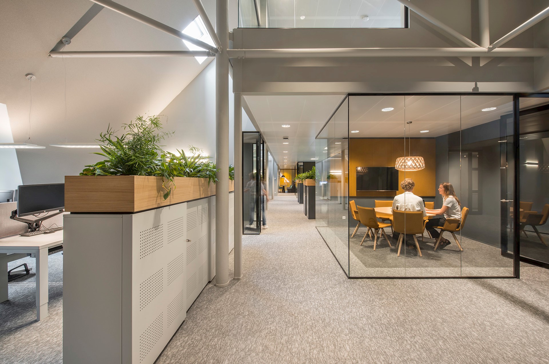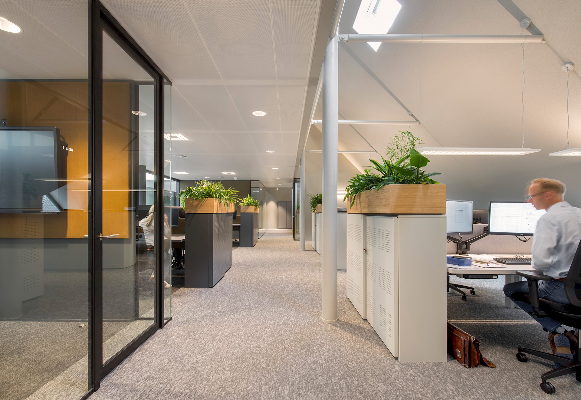 Vervolgens diende het kantoorpand qua indeling geschikt te worden gemaakt voor Het Nieuwe Werken. De opzet van het gebouw in deze vernieuwde hoofdvorm gaf ons de mogelijkheid om op een slimme manier een toekomstbestendig kantoorconcept in te passen. De open kantooromgeving is voorzien van uiteenlopende typen werk- en overlegplekken die taakgericht werken faciliteren.