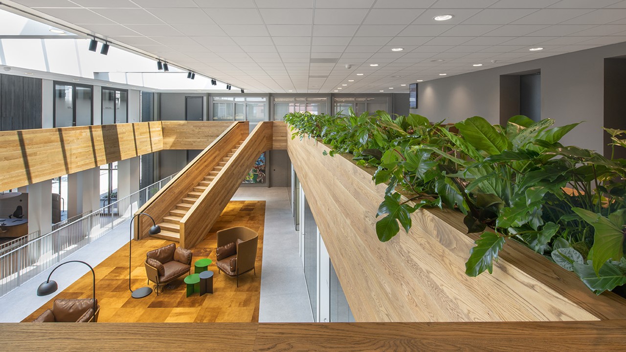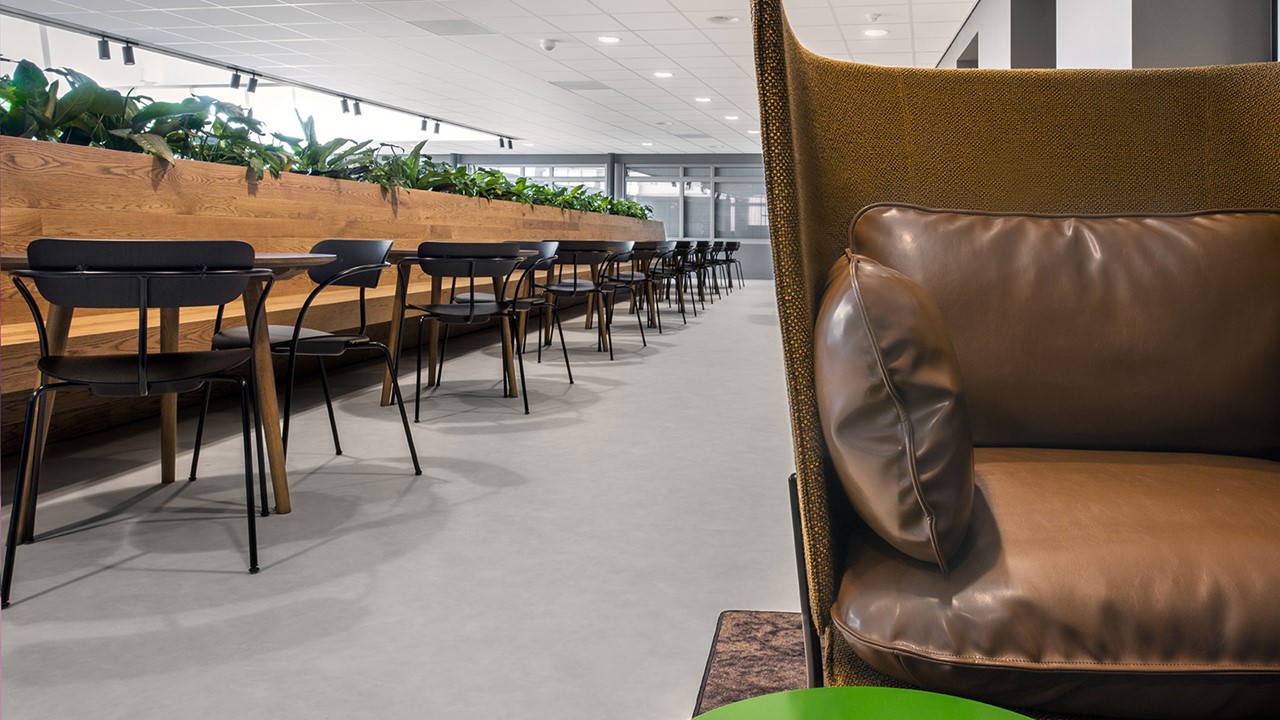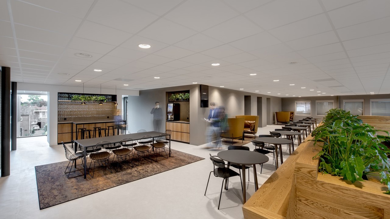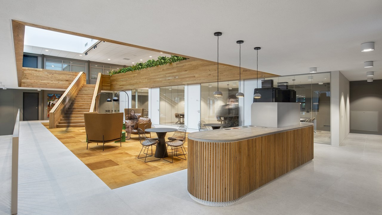 Vanzelfsprekend hielden wij in ons ontwerp rekening met Activiteit Gerelateerd Werken (AGW). Dit is het concept waarbij werknemers niet langer een vaste werkplek hebben, maar gebruikmaken van een werkplek die aansluit bij de werkzaamheden die zij op dat moment willen uitvoeren. Van het nieuwe vloerveld op de verdieping maakten wij een werk-lunchcafé met aanlandplekken, die zich nabij de hoofdtrap bevindt en in open verbinding staat met het atrium. Hoe verder van het atrium verwijderd, hoe rustiger de werkomgeving wordt. Waarbij we de stilteruimtes, waar in alle rust geconcentreerd gewerkt kan worden, zoveel mogelijk in de periferie plaatsten.