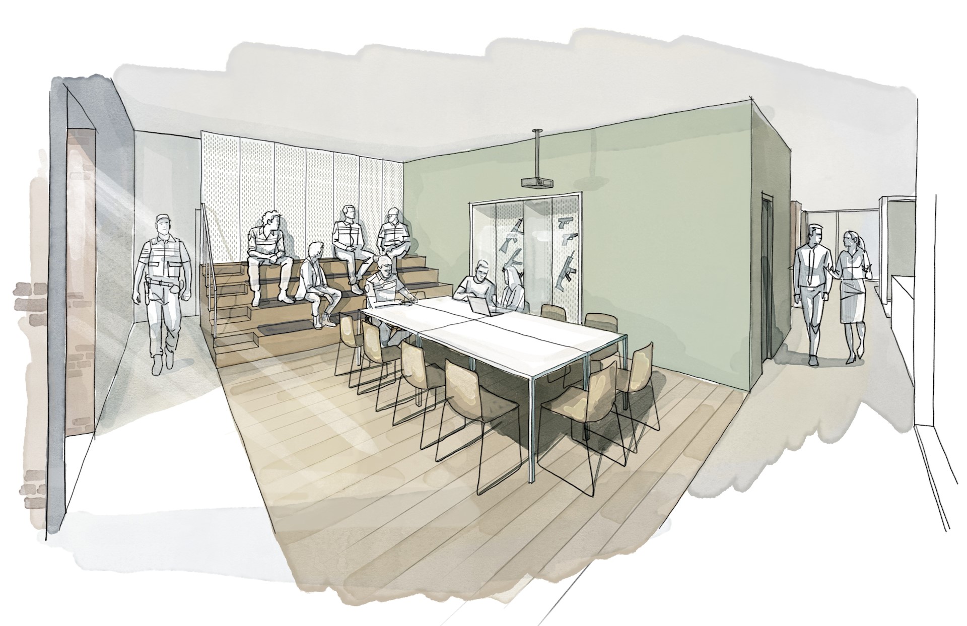 Als gevolg van de steeds verdere digitalisering is de behoefte aan een fysiek politiebureau, met voor ieder een eigen werkplek, kleiner geworden. Het nieuwe gebouw moet dus voorbereid zijn op deze ontwikkeling. Daarom hebben we gekozen voor een structuur die ombouw naar een woongebouw mogelijk maakt. Daarvoor is bijvoorbeeld de lift centraal in het gebouw geplaatst. Ook kan de huidige vide een lichtgewicht verdiepingsvloer krijgen. De terugliggende metselwerkvlakken kunnen worden geamoveerd en worden vervangen door ramen die het nodige daglicht geven. Een ander voorbeeld is de toepassing van galerijen aan het binnenterrein, waaraan in de toekomst woningen kunnen worden gelegd. Door de ligging aan de zuid- en westzijde, functioneert deze bovendien als zonwering. Zo wordt de koelvraag verminderd en zijn er minder (klimaat)installaties nodig. Tegelijkertijd fungeert de galerij als terras, waarop het korps uit het zicht van de openbare ruimte kan ontspannen.