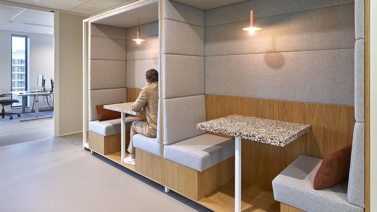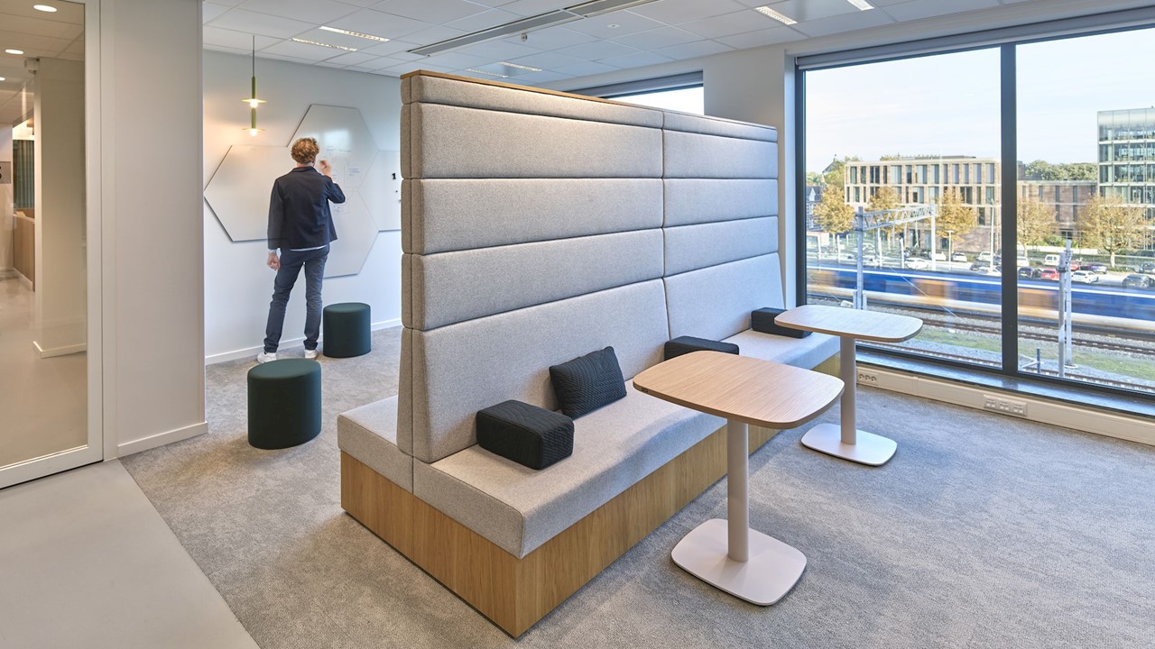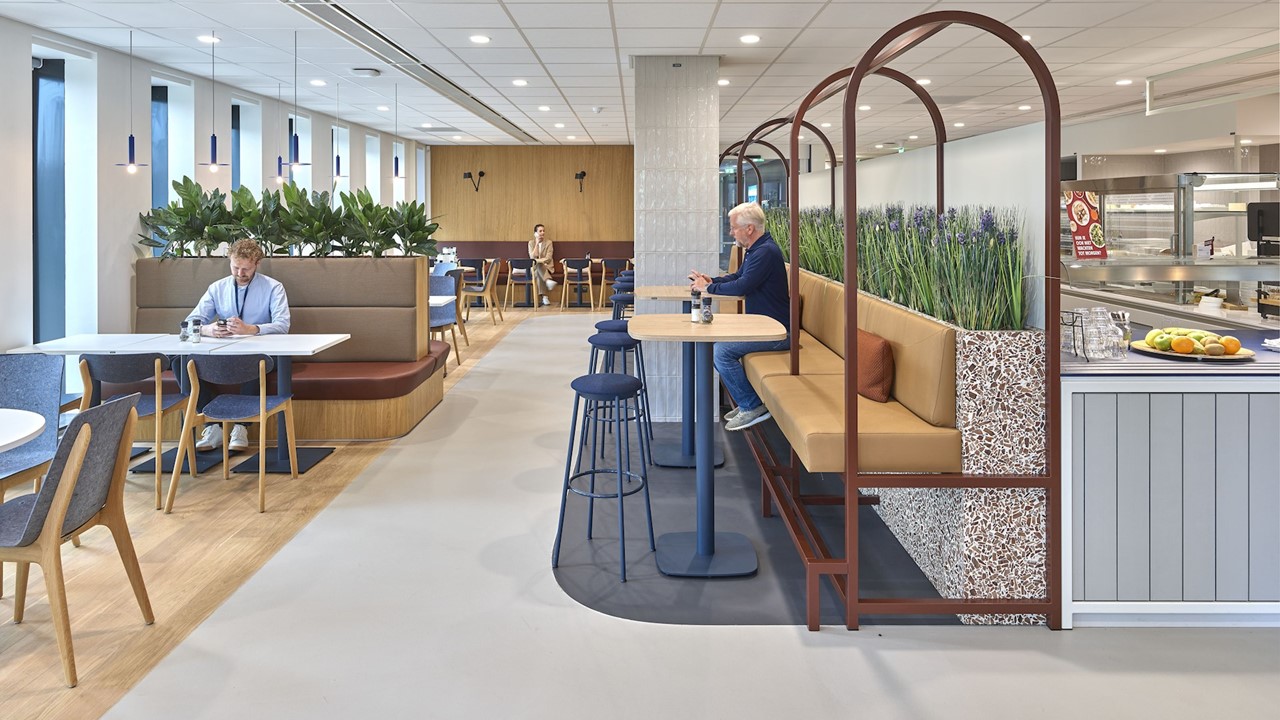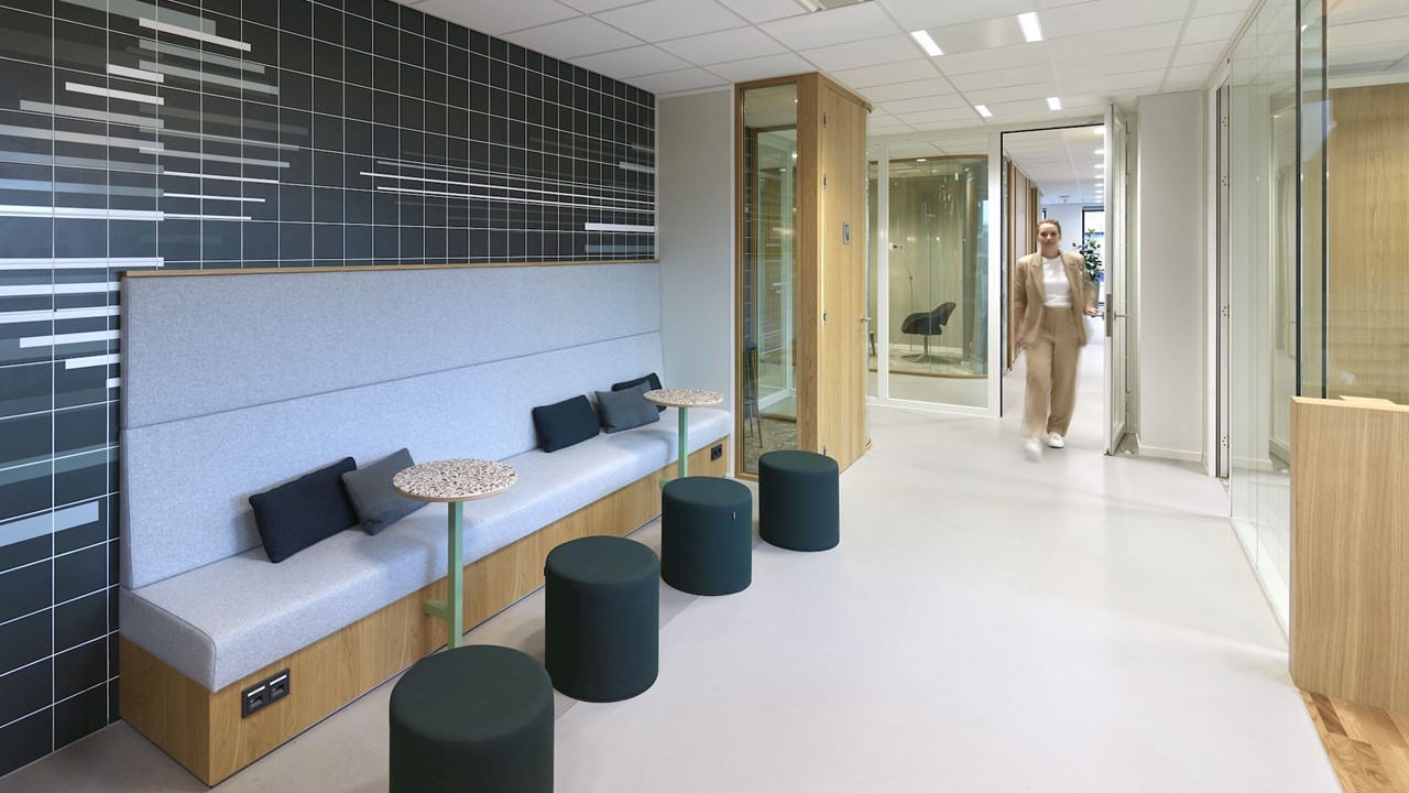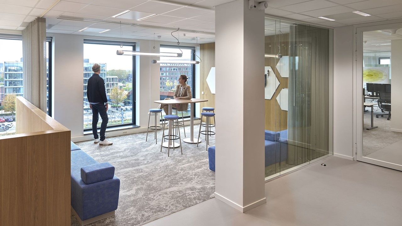 Op iedere verdieping liggen aan de vide dynamische ontmoetingsplekken waar medewerkers iets drinken, even bijpraten of kort overleggen. Vanuit daar lopen medewerkers de kleine vergaderruimtes in. Het interieur van de sfeervolle vergaderruimtes heeft een moderne vormgeving, geïnspireerd op een bruin café. Gevarieerd ingericht met een breed scala aan vergadermogelijkheden zijn er ruimtes met lage en hoge vergadertafels, een ‘huiskameropzet’ en/of scrumvoorzieningen. Deze vormen een buffer naar de rustige werkzones.