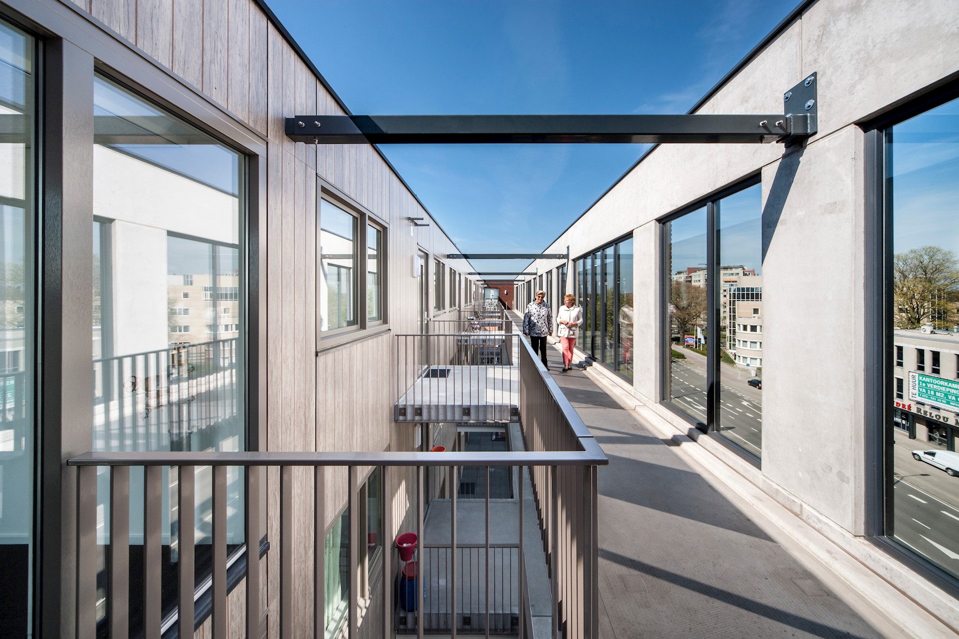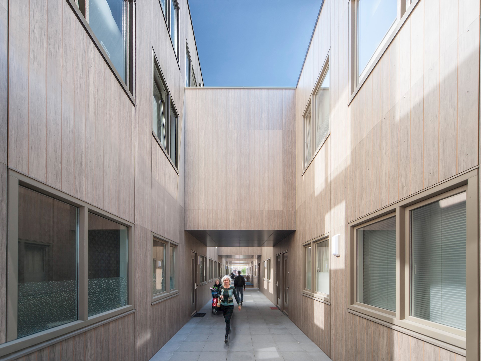 Boven het kantoor van de Thuis zijn drie lagen appartementen gesitueerd. De woningen boven het gezondheidscentrum bestaan grotendeels uit patio-appartementen die trapsgewijs gestapeld zijn in drie lagen.