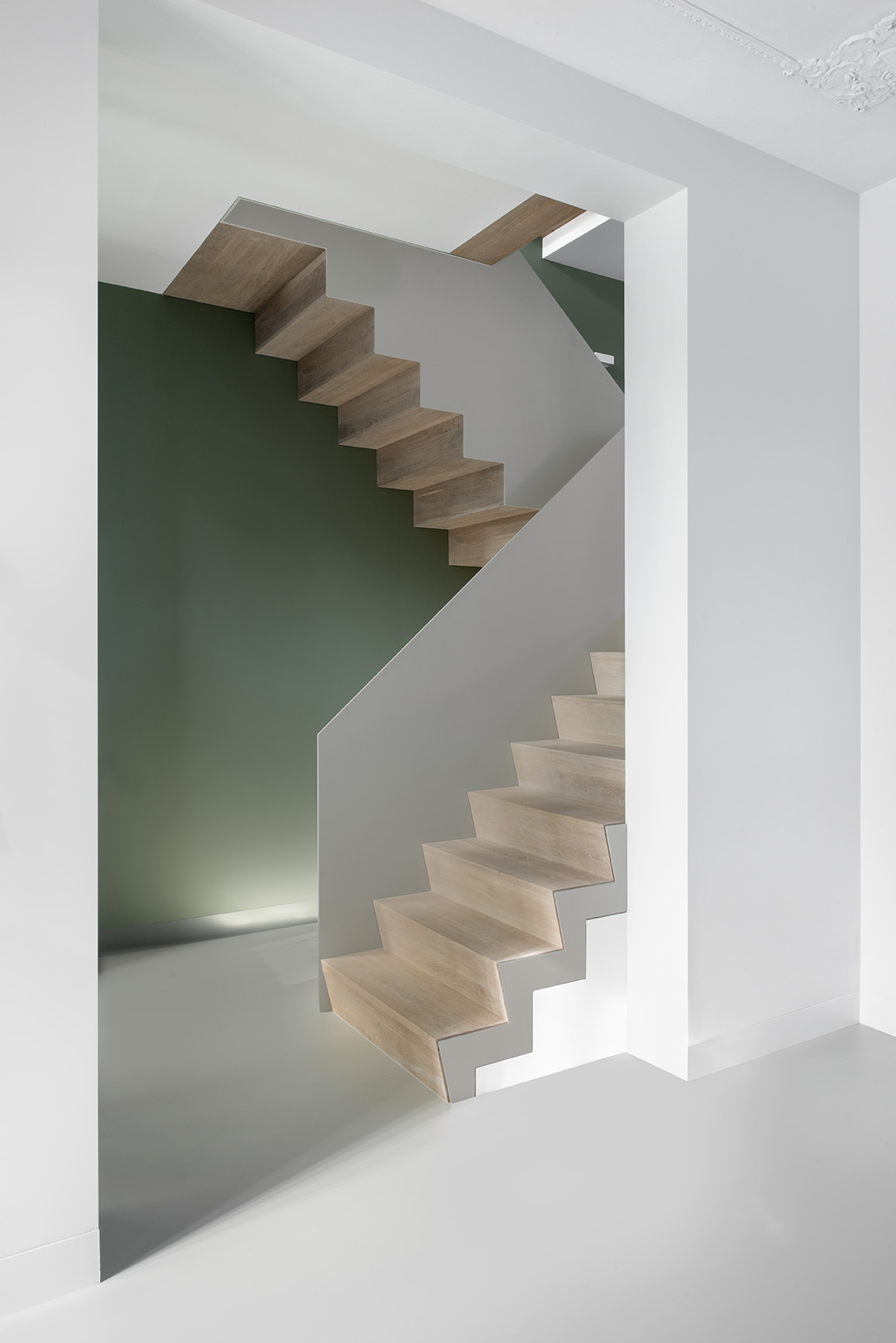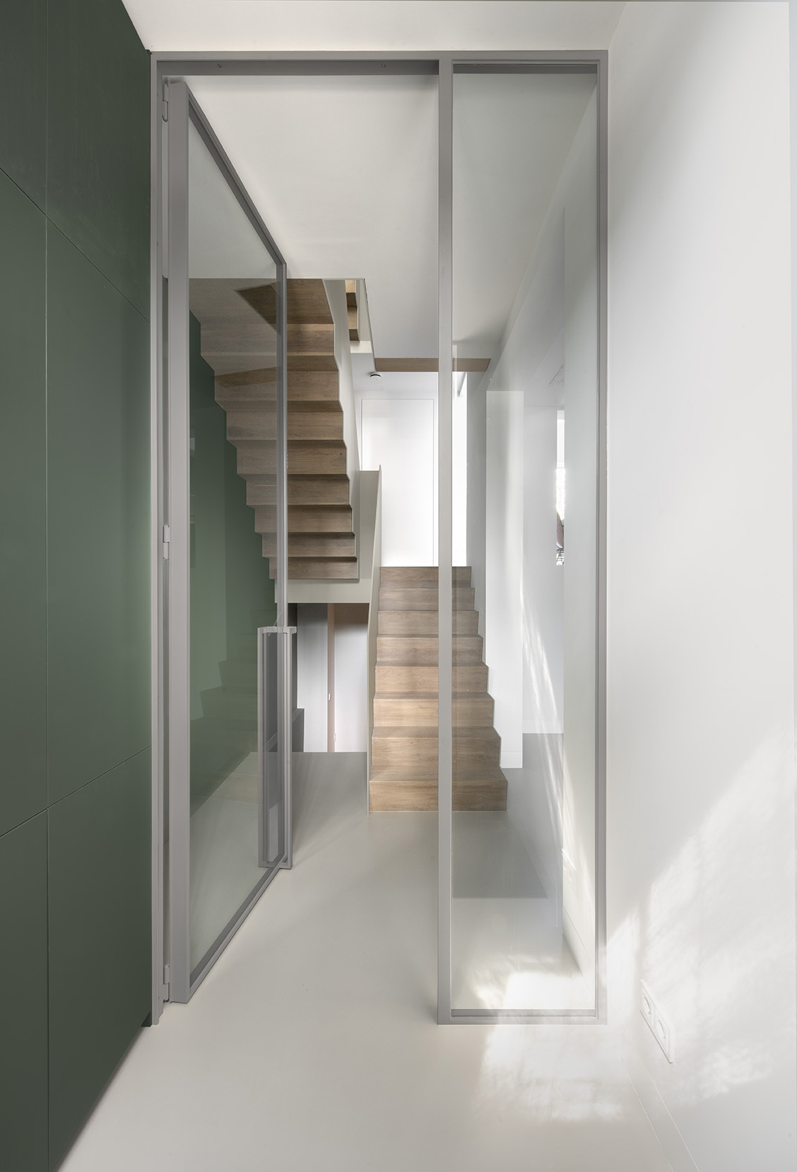 Wij hebben een plan gemaakt waarbij alle verdiepingen van het woonhuis met elkaar worden verbonden. Het karakteristieke casco van het huis hebben we behouden maar van binnen is het volledig gemoderniseerd. Het hoogteverschil tussen de voorgevel aan de zijde van de Dieze en de achtergevel aan de zijde van de Dommel zorgt ervoor dat een ruimtelijke splitlevel woning is ontstaan waarin alle leefruimtes met elkaar verbonden zijn. Het nieuwe trappenhuis vormt hierin de centrale verbindende spil van het huis.