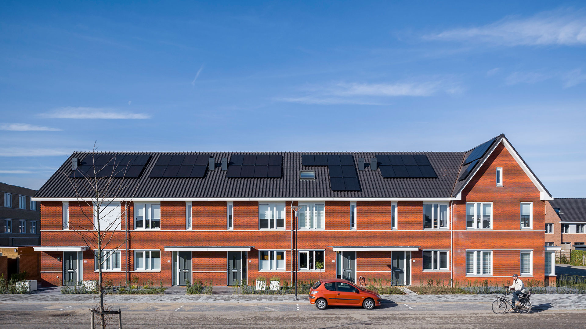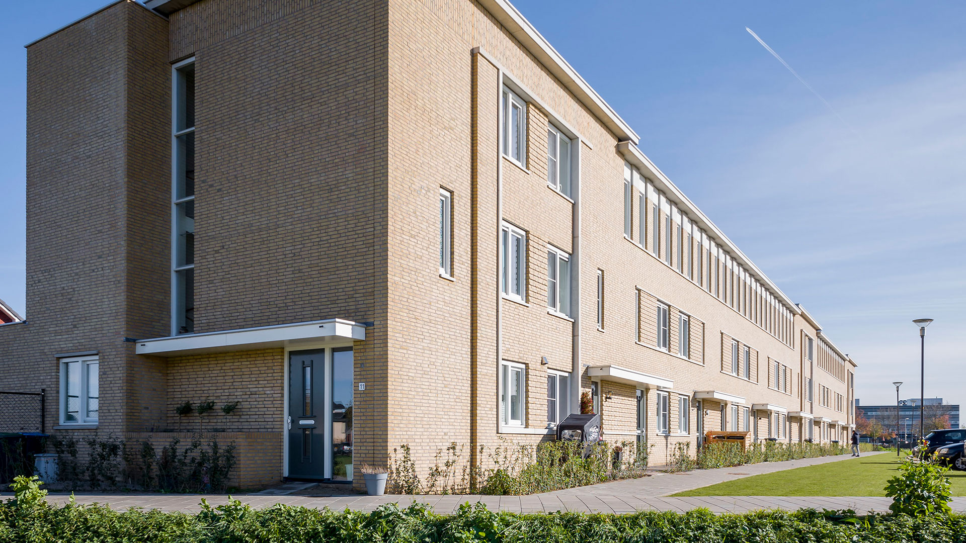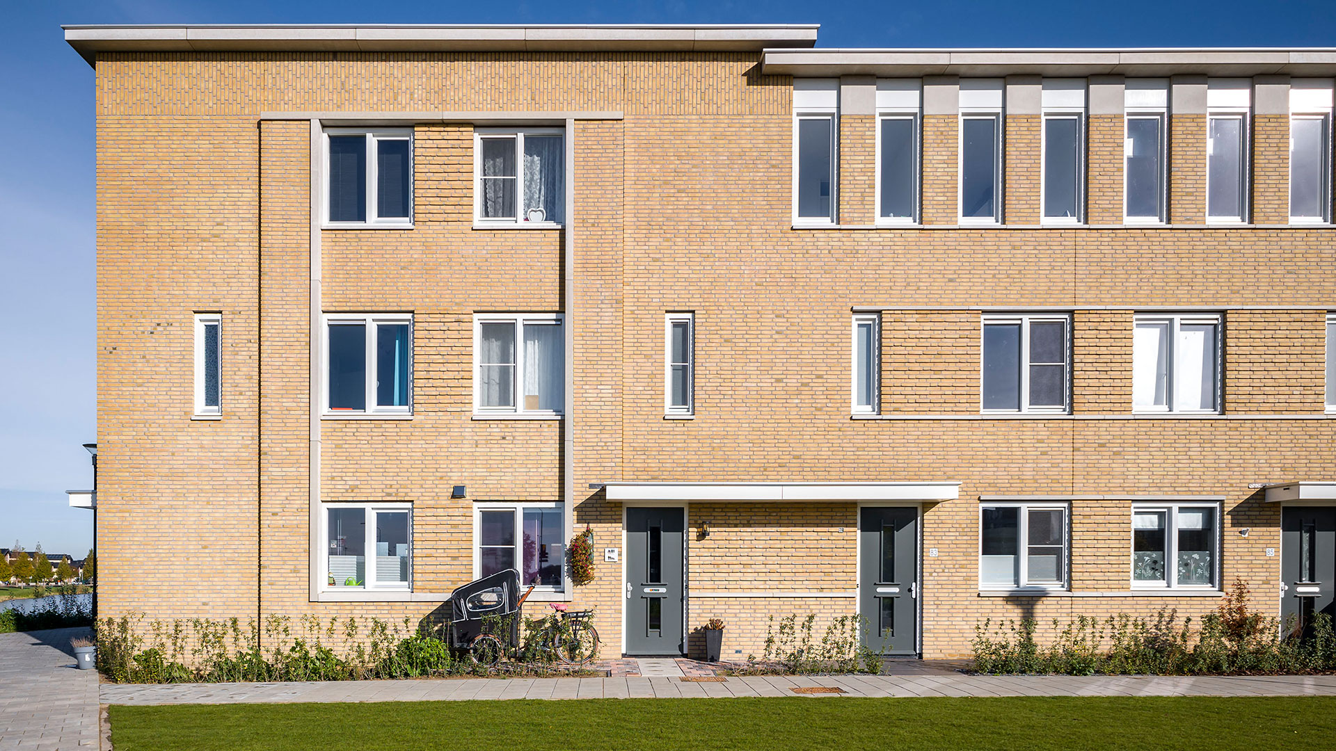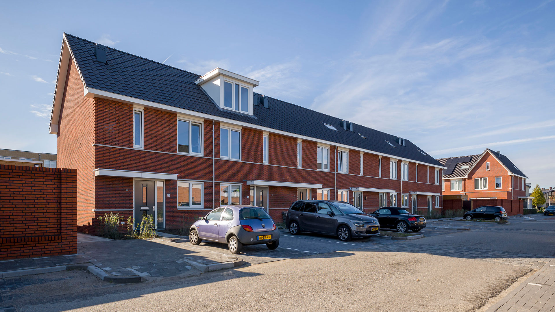 De kroon op de derde bouwlaag van de tussenliggende woningen verbindt de accenten met elkaar. In de gevel bevinden zich daarnaast nog verschillende woningoverstijgende, vormgevende elementen, zoals bijvoorbeeld de luifels. Hiermee is deze rij meer dan een optelling van woningen, maar een totaalcompositie. De zijgevels van de hoekwoningen krijgen door het spel van baksteenvolumes een extra accent. Zo ontstaat een rij woningen met een geheel eigen, uitgesproken karakter dat een blikvanger wordt voor de wijk.